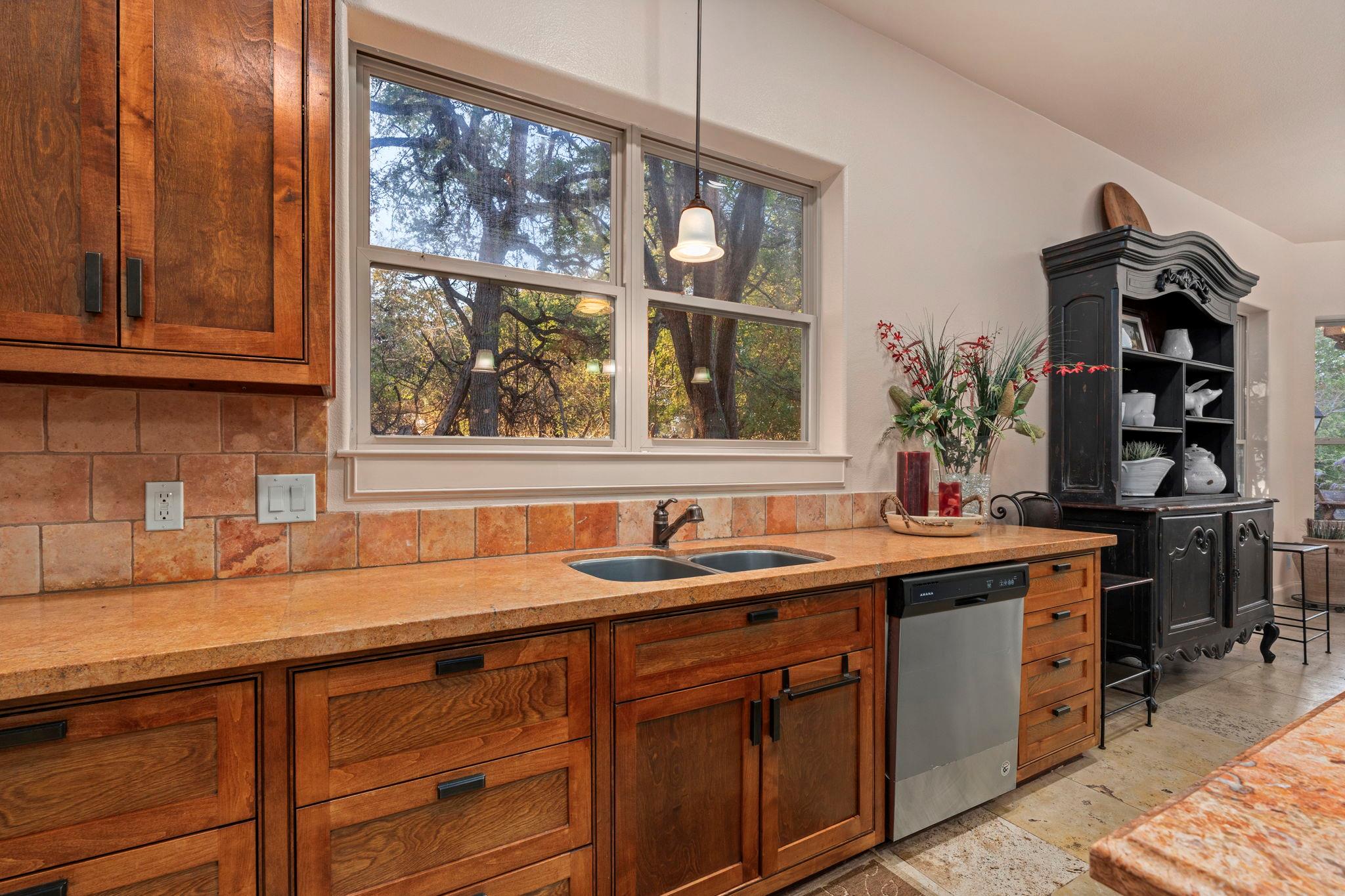 Mediterranean-Inspired Riverfront Estate with Exceptional Grounds and Guest Accommodations Set on approximately 2.84 acres with direct San Marcos River frontage, this distinctive estate presents a rare combination of architectural character, expansive outdoor living, and multiple guest accommodations. Thoughtfully designed and richly detailed, the property offers a private setting enhanced by natural surroundings and curated improvements throughout. The main residence is a Mediterranean-style stucco home featuring three bedrooms and two and a half bathrooms, where travertine flooring extends throughout the interiors. The kitchen is appointed with a marble island and custom cabinetry. Two secondary bedrooms open directly to a private courtyard. The primary suite is designed as a retreat, offering a spacious layout that includes a two-story closet, a soaking tub with an integrated heating system, and a reinforced safe room. Outdoor living features a covered patio with a fireplace, integrated television space, full outdoor kitchen, and fire pit. Additional features include a whole home generator, leafguard gutters, and a two-car garage with an extendable awning. Beyond the main residence, the property offers a collection of versatile structures, including a four-car garage with plumbing and outdoor shower, an additional workshop/garage, and a one-bedroom guesthouse with full kitchen and private balcony. A unique highlight is the elevated treehouse retreat overlooking the river, complete with a kitchenette, living area, and outdoor shower. The grounds include approximately 18,000 square feet of brick pavers leading to a riverfront deck with covered picnic areas. Additional features include a water feature, riverside sitting area with a fireplace, and a full RV hookup. Combining river frontage, architectural detail, and a wide array of amenities, this property offers a distinctive opportunity for private enjoyment or flexible living in a scenic Texas setting.