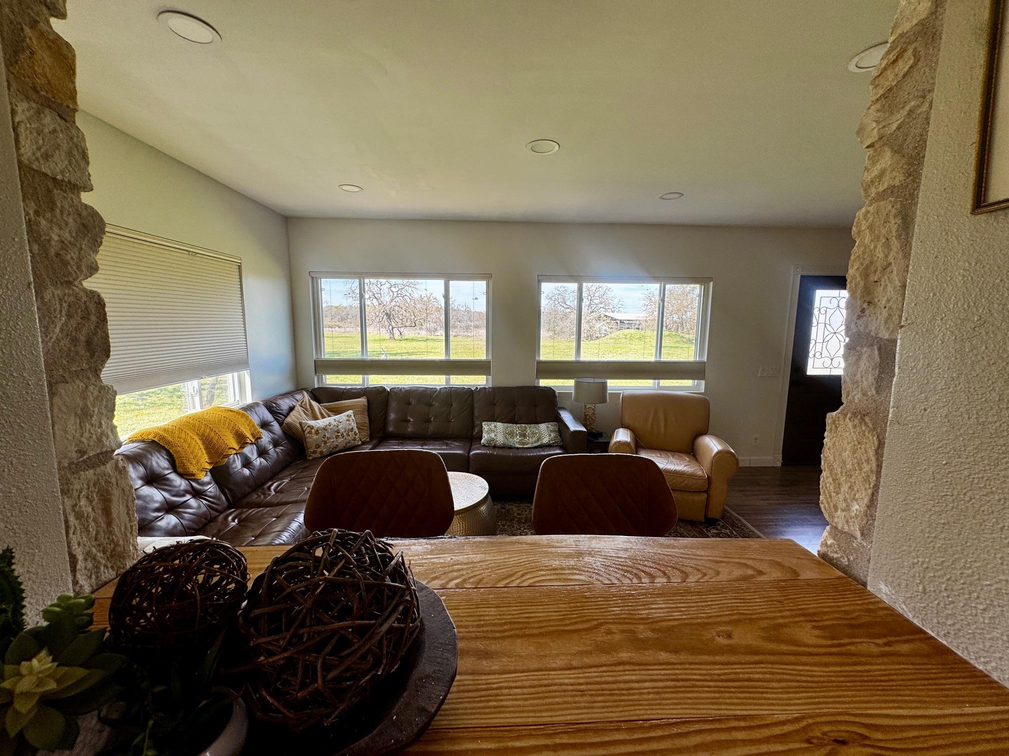 MOTIVATED SELLER WILL ENTERTAIN ALL OFFERS! Escape to country living on this secluded 5-acre retreat, complete with a private in-ground pool and beautiful Hill Country views. This bright and inviting home offers 2 spacious bedrooms, 1.5 bathrooms, and an open layout filled with natural light. Inside, you’ll find a versatile loft and additional space ideal for a home office complete with fiber optic internet. The property also features a 60 x 20 storage building that could be used as horse stalls, tool/tack rooms, additional parking or has the potential to be converted into a guest house. Step outside and enjoy the peaceful setting, complete with an established 70 X 30 high-fenced garden, room for livestock,and plenty of space to entertain or simply unwind. Exceptional water well producing a documented 50 GPM. Additional highlights include four energy-efficient mini-split units for heating and cooling, a 200-gallon propane tank for the cooking range, and a unique vintage kitchen island that adds character and charm. Many upgrades added including 200 amp electrical service. If you’re looking for privacy, space, a dream work from home setting, and a taste of farm life, this one-of-a-kind property is ready to welcome you home.