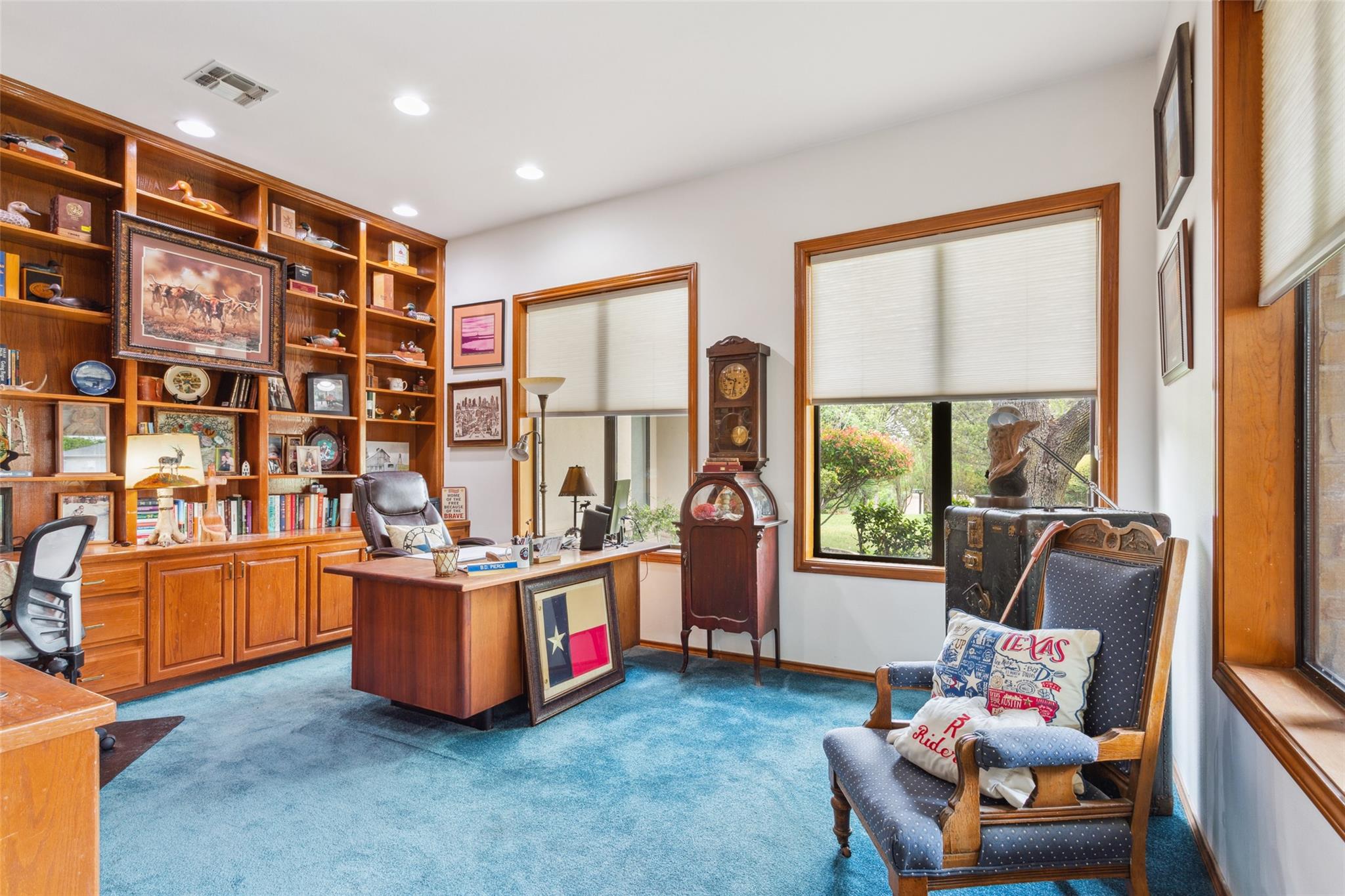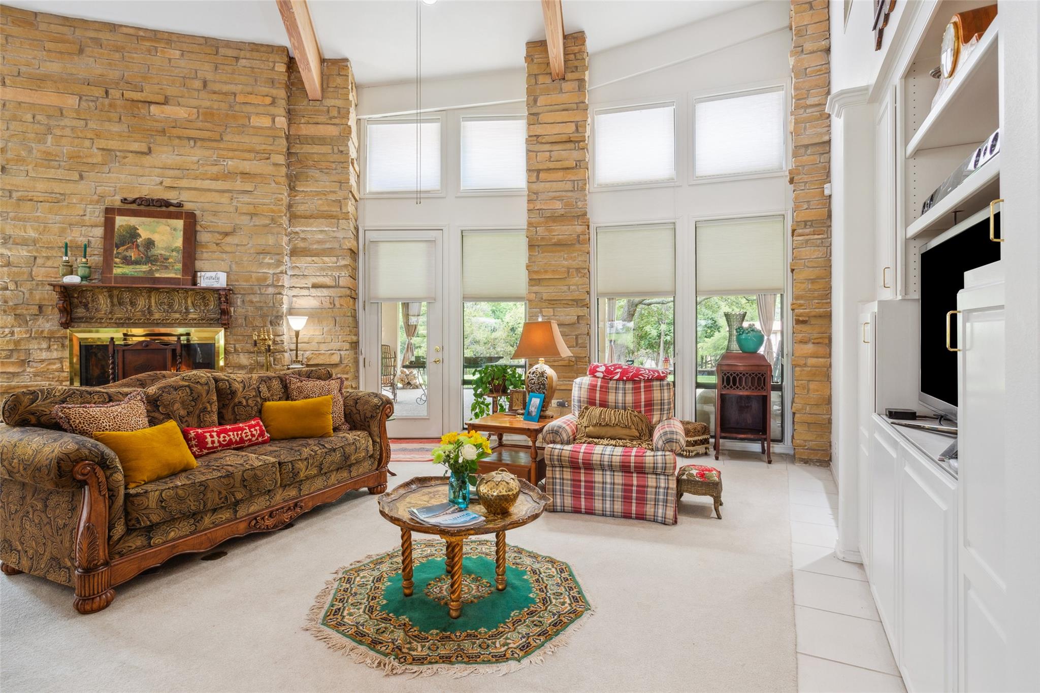 A true architectural original, this elegant estate stands proudly in the heart of Mill Creek, radiating character and a sense of soul that’s hard to find. Nestled beneath mature oaks and set back on a beautifully landscaped 2-acre lot, this home exudes elegance and endless potential from the moment you arrive under the grand porte-cochère. Upon your first step inside, you’ll be captivated by soaring vaulted ceilings, exposed wood beams, and floor-to-ceiling stonework that anchor the stunning living room. Natural light fills the home through walls of windows, offering panoramic views of the manicured grounds. This sprawling single-story residence offers over 6,000 square feet of living space with 4 spacious bedrooms, 6.5 bathrooms, and multiple gathering areas. The layout caters to both comfortable everyday living and effortless entertaining with a wet bar, oversized back patio, additional living area, two dining areas, and 3-car garage. A sunroom, workstation, and family room offer additional spaces you can customize to meet your needs. The private primary wing includes a luxurious suite with dual walk-in closets, dual bathrooms, and a beautiful office just steps away. An opposite wing of the home includes three additional bedrooms, each with its own bathroom and ample closet space. This custom-designed treasure blends elegance with opportunity — a home that’s ready to be loved into its next era.
