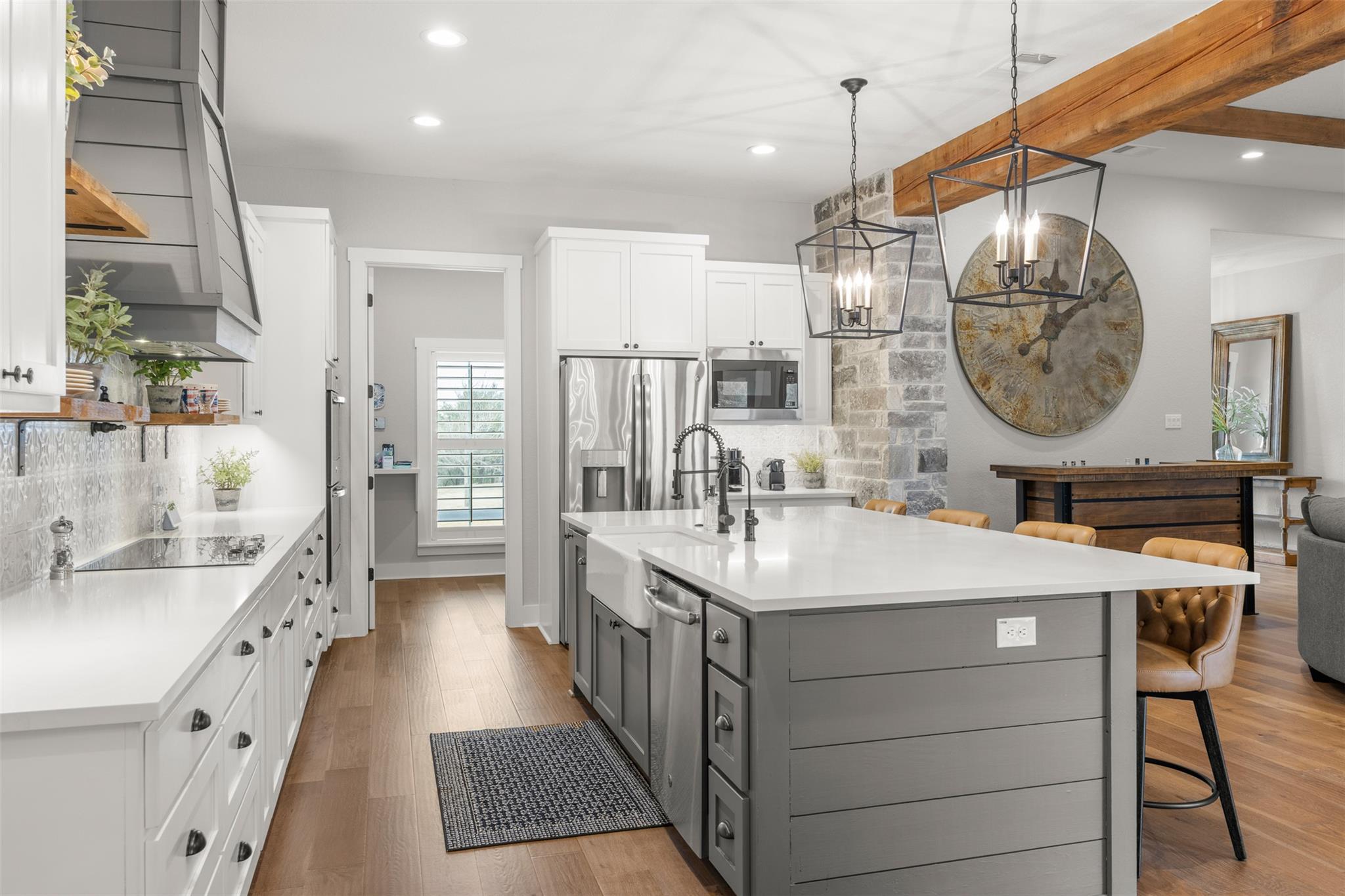 Nestled on 1.8 private acres in the highly desirable gated community of Dos Lagos in Dripping Springs, this stunning modern farmhouse offers the perfect blend of luxury, comfort, and Hill Country charm. With 3,747 square feet, 5 bedrooms, and 4.5 bathrooms, plus a dedicated home office, this meticulously maintained residence lives like a nearly brand-new home. As a second home for the current owner, the property has seen only about 8–9 months of total use. Designed for both everyday living and effortless entertaining, the home features an open-concept floor plan filled with natural light and elevated by custom doors throughout. The main level includes four spacious bedrooms, two of which feature private en-suite bathrooms, providing comfort and privacy for family and guests alike. Upstairs, the fifth bedroom with its own full bathroom offers exceptional flexibility and can easily serve as a guest suite, game room, office, or additional living space. Step outside to an entertainer’s dream. The expansive covered back porch overlooks the beautifully maintained grounds and includes a built-in grill and sink, perfect for hosting gatherings year-round. The backyard’s true showstopper is a magnificent, mature live oak tree—a breathtaking natural centerpiece that defines the outdoor space and embodies the beauty of the Texas Hill Country. Additional highlights include a recently constructed, fully insulated well house that provides extra storage for equipment and tools. Located within the highly acclaimed Dripping Springs ISD and offering the privacy of a gated community while still being close to local dining, shopping, and wineries, this exceptional property is a rare opportunity to own a lightly lived-in Hill Country retreat in one of the area’s most sought-after neighborhoods.