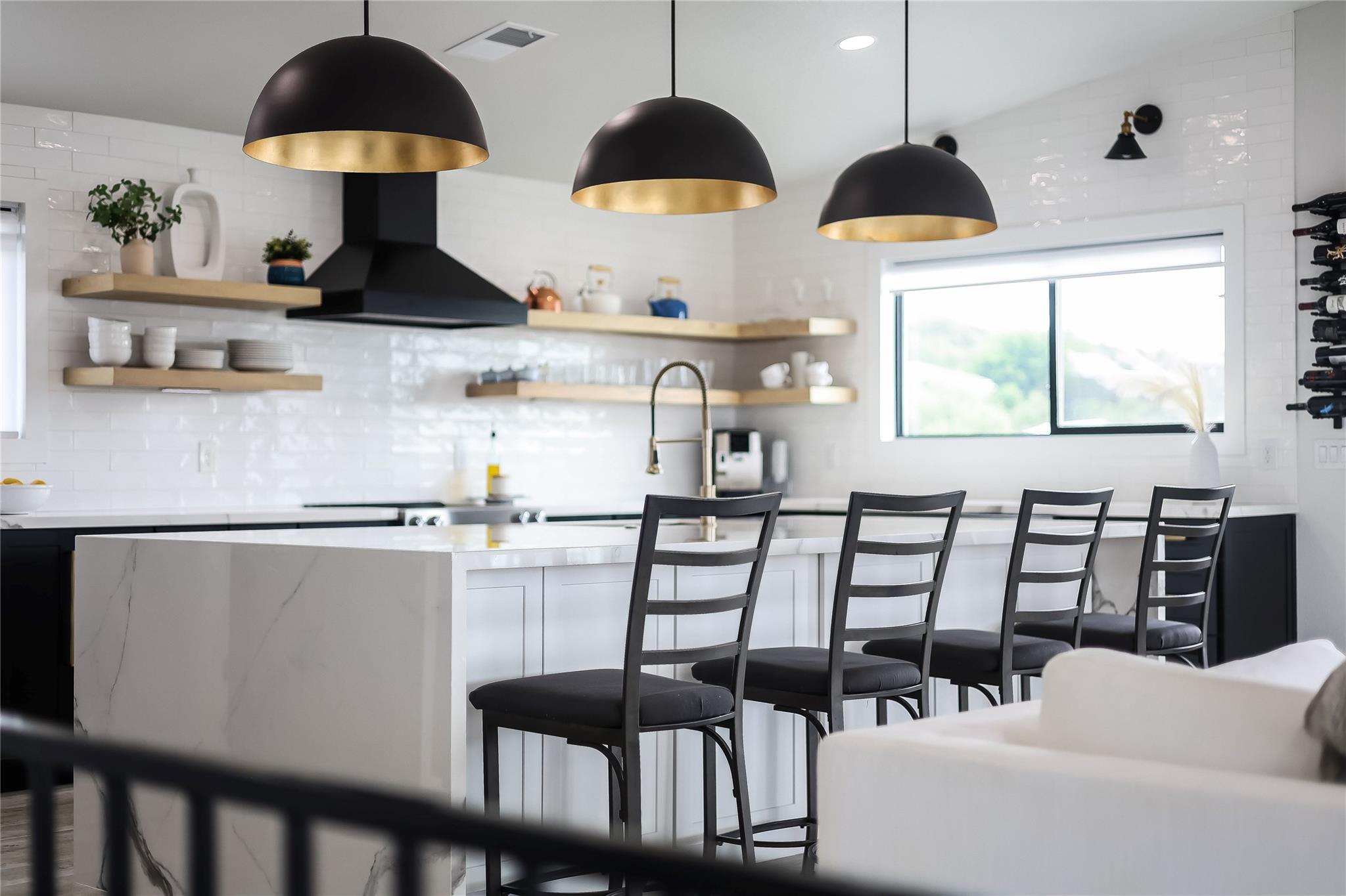 Lakefront living on 1.5 acres perfectly positioned on a cul-de-sac, with boat dock and hill country views! Conveniently located near Arrowhead Park, this expansive residence offers 5 bedrooms, 4 baths and is thoughtfully designed for multi-generational living. Also can be utilized as an STR, allowing for income earning potential! The open-concept floor plan, with luxury modern design finishes throughout, is filled with natural light and showcases oversized windows framing breathtaking panoramic views. The chef’s kitchen is a standout feature, complete with: *Oversized island for gathering *Beverage & wine fridge, and ice maker *Sleek countertops and abundant cabinetry Multiple living spaces include two living rooms, each with its own fireplace, and offer flexibility for hosting, relaxing, or accommodating guests. The primary and secondary bedrooms are generously sized, creating peaceful retreats with serene views, while the bathrooms feature modern finishes and elevated design. Step outside to enjoy what truly sets this home apart: *Large covered balconies on every level with unobstructed lake and hill country views *Spacious yard ideal for entertaining Owning this home also includes membership to the Lago Vista POA, allowing exclusive access to 9 private waterfront parks, basketball court, boat ramps, campground, disc golf course, fishing well, fitness center, hiking trail, marinas, parks, pavilions, pool, athletic field, tennis courts, pickle ball courts, playgrounds and more!