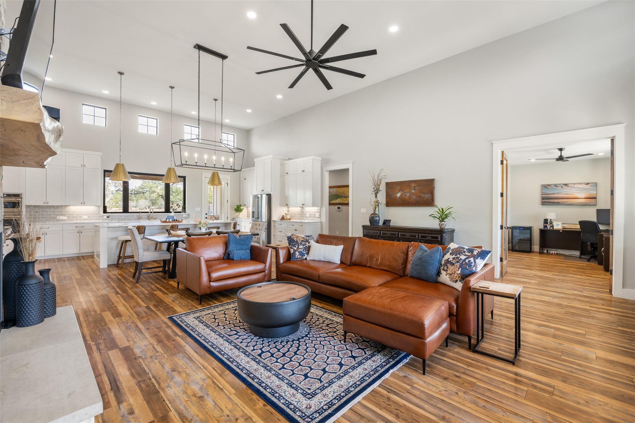 Experience refined country living in this exceptional 10.1-acre estate nestled within a private gated community and priced below Hays County appraised value of $1.905M. Designed for both luxury and functionality, this remarkable property offers a beautifully appointed main residence, private guest quarters, and resort-style outdoor living. The main home features 3 spacious bedrooms, 2.5 bathrooms, soaring 15-foot ceilings, and an open-concept layout ideal for entertaining. A dedicated office with elegant glass French doors provides a quiet workspace, while the chef’s kitchen impresses with top-of-the-line appliances, butler's pantry, oversized island, and seamless flow into the living area anchored by a custom reclaimed pecan fireplace mantle. Custom wood doors throughout add warmth and craftsmanship, while tankless water heaters, a water softener, filtration system, and a whole-house generator capable of powering the property for up to two weeks off-grid ensure comfort and peace of mind. A separate shop space and casita offers 1 bedroom, 1 bathroom, and its own living space—perfect for guests, extended family, or private retreats. Outdoor amenities rival a luxury resort, featuring a heated pool and spa with waterfall, plus a fully covered and heated cabana complete with an outdoor kitchen for year-round entertaining. Covered front and back porches invite you to relax and take in the scenic surroundings. Escondida Ranch is a highly desirable gated community offering their residents agricultural exempt land for a herd of Black Buck, providing valuable property tax savings. Additional highlights include a detached garage connected by breezeway, a separate shop with RV-sized door and its own driveway, fiber-wired internet reaching the pool, cabana, shop, and casita, and a secure iron-fenced area for pets. *Information deemed reliable but not guaranteed. Buyer and/or buyer's agent to verify all information