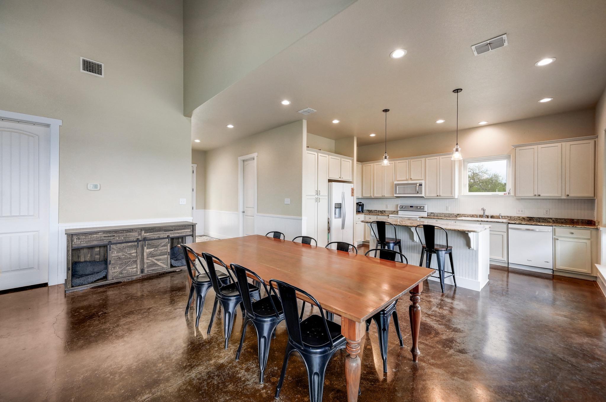 Perched on 11 Ag Exempt breathtaking acres with sweeping panoramic Hill Country views, this exceptional property offers the perfect blend of privacy, natural beauty, and refined country living. The gently rolling landscape provides a stunning backdrop of wide-open skies, mature native trees, and spectacular big Texas sunset views. The main residence is thoughtfully positioned to capture the incredible scenery and has 1904 square feet of comfortable, well-designed living spaces that blend seamlessly with the surrounding landscape. Expansive windows bring in abundant natural light and frame the views, creating a peaceful and inviting atmosphere throughout the home. The main house has an independent well and septic system from the guest apartment. The property has 2 wells and 2 septic systems. A separate guest house has an additional 1200 square feet of living space and 1200 square feet of workshop/storage and provides ideal accommodations for visitors or extended family offering flexibility and privacy while remaining conveniently close to the main residence. This 11 acre property offers private Hill Country land to explore, entertain, and create your dream outdoor living environment. Whether adding a pool, gardens, outdoor kitchen, or additional structures, the possibilities are endless. Enjoy the tranquility of country living while being just minutes from town—yet worlds away. Perfect as a full-time residence or lock-and-leave Hill Country retreat, this property has it all- views, privacy, and a setting ideal for entertaining and gathering with family and friends. A rare opportunity to own a truly special piece of the Texas Hill Country.