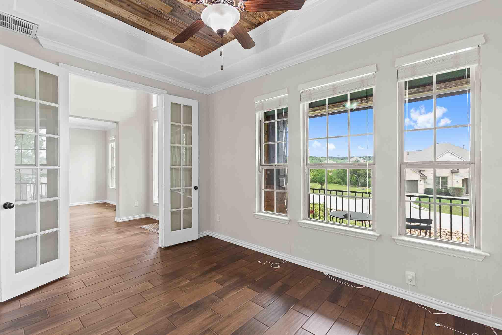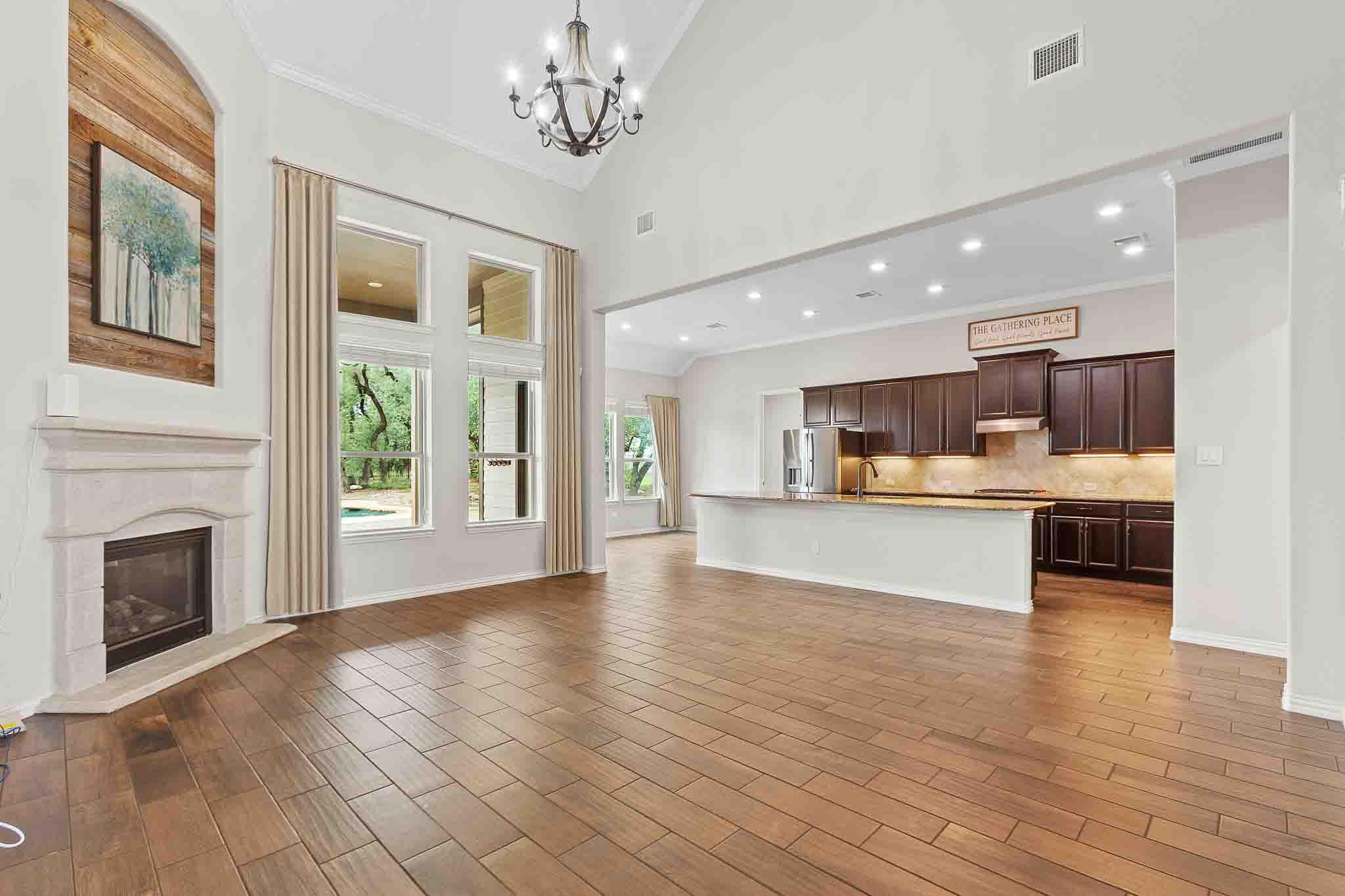 Welcome to this Spacious 4 Bedroom + Bonus room, Sola Vista stunner, set on a private 1 acre lot surrounded by mature oaks, offering space, pool, privacy, and elevated Hill Country living. This thoughtfully designed home features a dedicated office, formal dining room, and an oversized main-level laundry room, all built for comfort and function. The main living areas showcase wood-look tile flooring, while bedrooms feature soft carpet for added comfort. Soaring living room ceilings cascade to the upper level, filling the home with natural light and an open, airy feel throughout. The primary suite on the main level offers tray ceilings, abundant natural light, custom California Closets, and a spa style bath with dual sinks, soaking tub, and separate shower. A dedicated front office with built-in shelving and cabinetry provides a perfect work-from-home setup. Recent upgrades include a whole home generator, updated landscaping, power sun shades, custom built-ins, and custom paver pool decking, adding both style and peace of mind. Outside you will find your private retreat featuring an in-ground pool, fenced backyard, and expansive outdoor space framed by mature oaks, ideal for relaxing or entertaining. A storage shed on the property adds extra convenience for tools, equipment, or hobbies. Conveniently located with quick access to Highway 71 and RR 620, this home offers an easy commute to Austin, Lakeway, and surrounding Hill Country destinations. Just minutes from Lake Travis ISD schools including West Cypress Hills Elementary and the brand-new Lake Travis High School within the neighborhood, and about 15 minutes to Hill Country Galleria, Whole Foods, HEB, dining, shopping, and entertainment in Bee Cave and Lakeway. Schedule your tour today before this Hill Country beauty is gone! Discounted rate options and no lender fee future refinancing may be available for qualified buyers of this home.