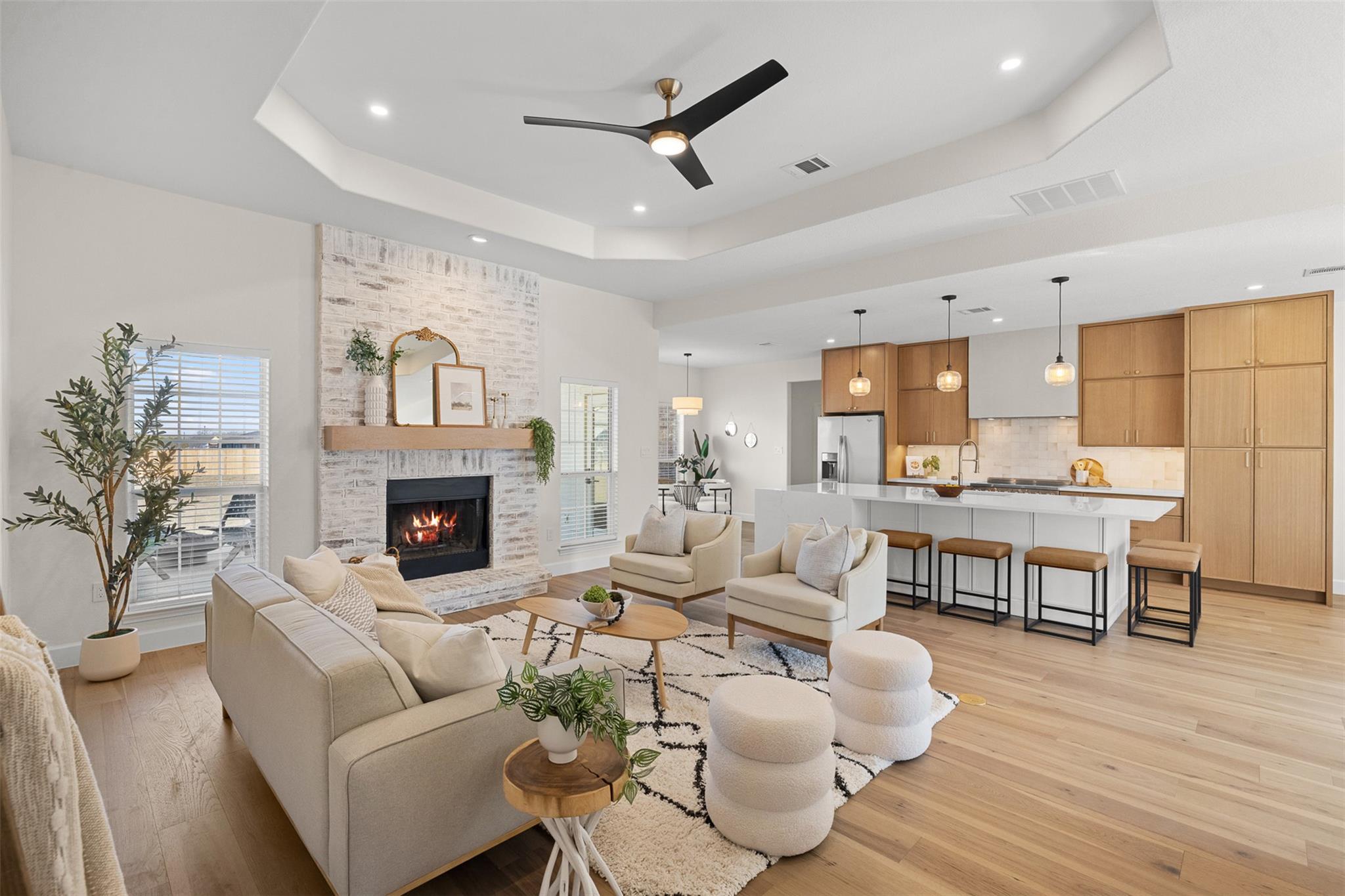 Agent/Owner. This unique property is located in the exclusive gated Gabriel's Overlook community, with a comprehensive luxury focused renovation completed in 2025, offering a level of sophistication that is unmatched. Refined elegance flows throughout with hickory hardwood floors, a craftsman entry door, and Portella plaster accents. The custom gourmet kitchen offers white oak cabinets, professional appliances, two-sided seating island. Luxurious primary bath features a frameless glass shower, freestanding tub, and a custom white oak double vanity. Even the large laundry room is upgraded with custom cabinets, a deep stainless steel sink, and an extra refridgerator. The property sits on an incredible, private & expansive acreage lot defined by mature oak trees and a newly fenced backyard. Gabriels Overlook features direct access to the San Gabriel River and a serene park like views. This beautifully renewed, well-appointed home is ready for its first occupants since its dramatic transformation.