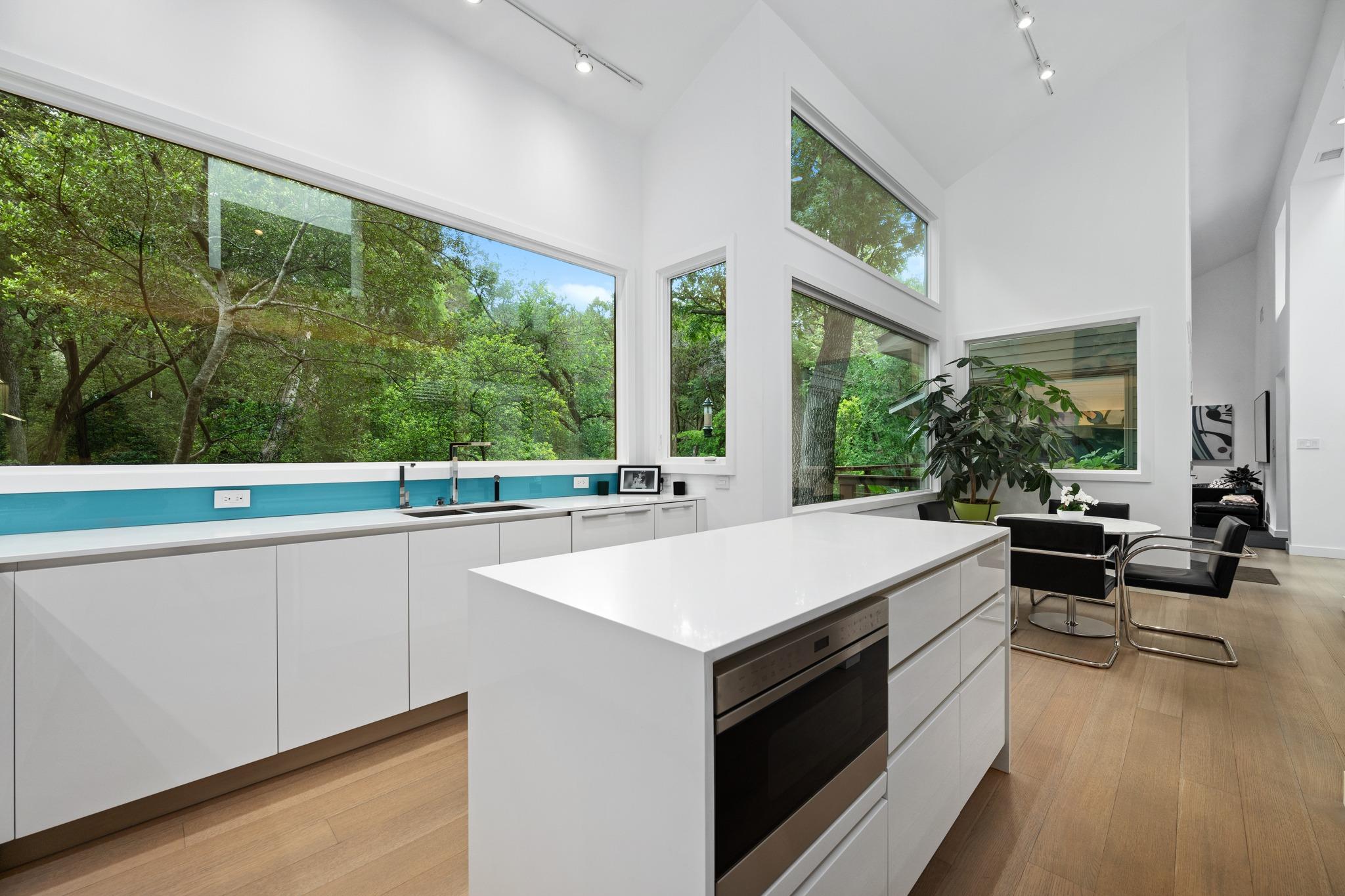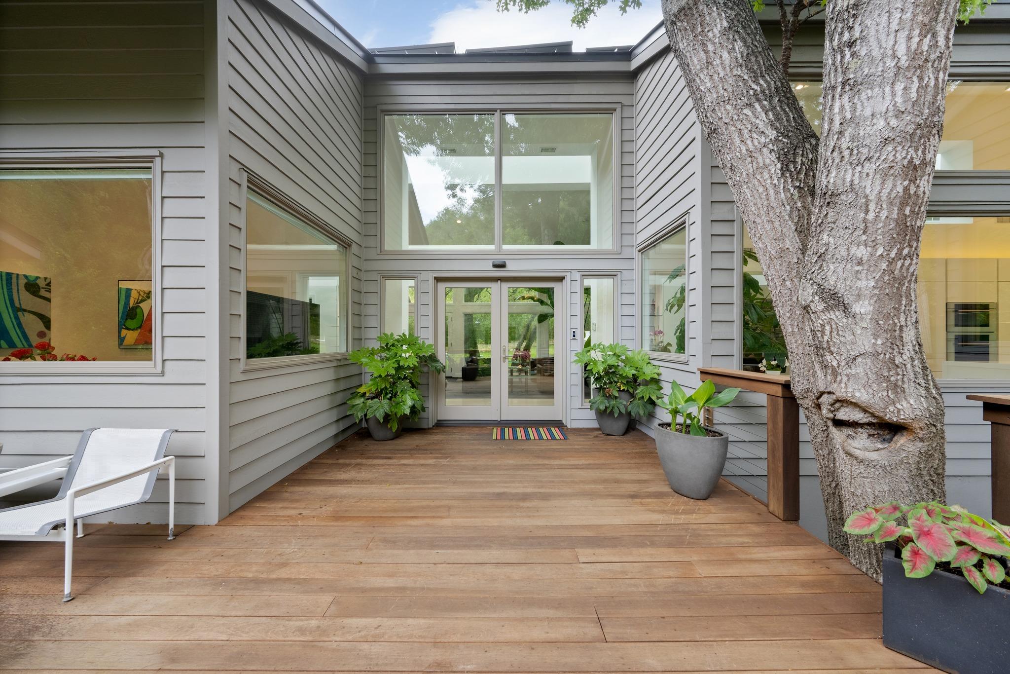 A rare opportunity to find a beautifully designed home in this private wooded setting on a quiet cul de sac in Westlake Hills. Original design by Bob Renfro with Don Crowell builder and recent upgrades/remodel by Matt Garcia Design. This wonderful single story home has huge glass windows and skylights bringing in great natural light throughout but also viewing into a serene wooded setting. All high end finishes with Poliform and Pedini cabinets from Italy and Caesarstone countertops. Exterior finishes include a standing seam metal roof and Ipe decking wrapping around the house. The pool area is completely private with a studio/office space. Below the studio is a heated/cooled storage space of about 243 feet not included in square footage. This is an opportunity to live in the middle of nature with deer, birds and other wildlife yet no visible neighbors. Minutes to schools, shopping and approx 15 min to downtown. Property has a 1 story height restriction - ask agent for details.