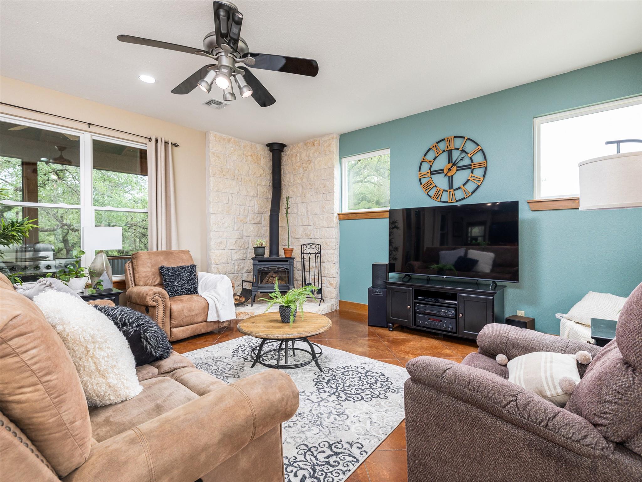 Leave the noise behind and settle into the calm of true country living at this private Hill Country retreat in Spicewood. Nestled on a beautiful, tree-filled 1-acre lot in a quiet community of just 26 lots, 16 homes, this one-owner property offers the kind of peace, space, and simplicity that’s getting harder to find. Life feels different here. Mornings start slower with coffee on the screened-in patio, surrounded by the sounds of nature. Evenings invite you to gather with friends, fire up the BBQ, or head down to the lake for a quiet swim or sunset fishing at the private waterfront—reserved for residents only. With your own private boat ramp just minutes away, lake days are effortless and uncrowded. Inside, the home is warm, inviting, natural light filled and designed for comfort and entertaining. The large kitchen with a walk-in pantry is generous space to gather. With 3 bedrooms, 2.5 bathrooms, and a flexible office or bonus room downstairs, there’s room to live, work, and host with ease. Comfort meets practicality throughout—concrete floors help keep the home cool, while a wood-burning stove creates the perfect cozy atmosphere on cooler nights. The metal roof offers durability and easy maintenance, and energy-efficient features like low-E windows, a high-efficiency HVAC system with HEPA filtration, and an attic fan help keep utility costs low. You’ll also appreciate the incredible amount of storage and the oversized 25’ x 30’ garage—plus RV and boat parking right on your property. No storage fees, no hassle—just convenience and peace of mind knowing everything is protected. Surrounded by mature trees and located in a low-traffic, peaceful neighborhood, this home offers a rare blend of privacy and community. Enjoy being just minutes from the lake and a short drive to highly rated Spicewood Elementary. If you’ve been searching for a place where you can truly relax, spread out, and enjoy the quiet beauty of the Hill Country—this is your opportunity.