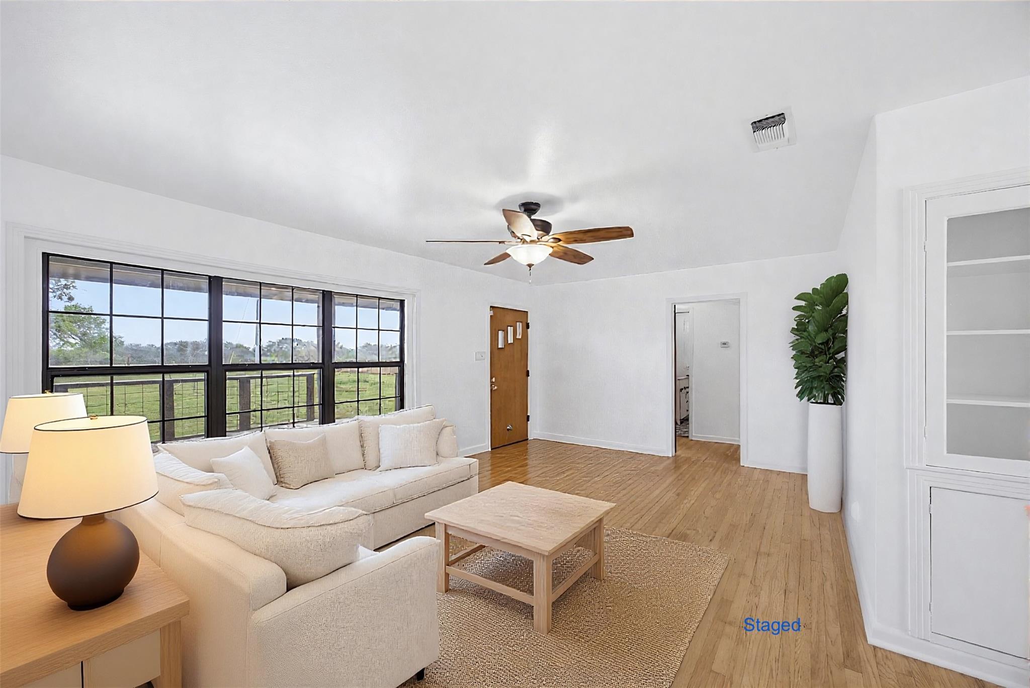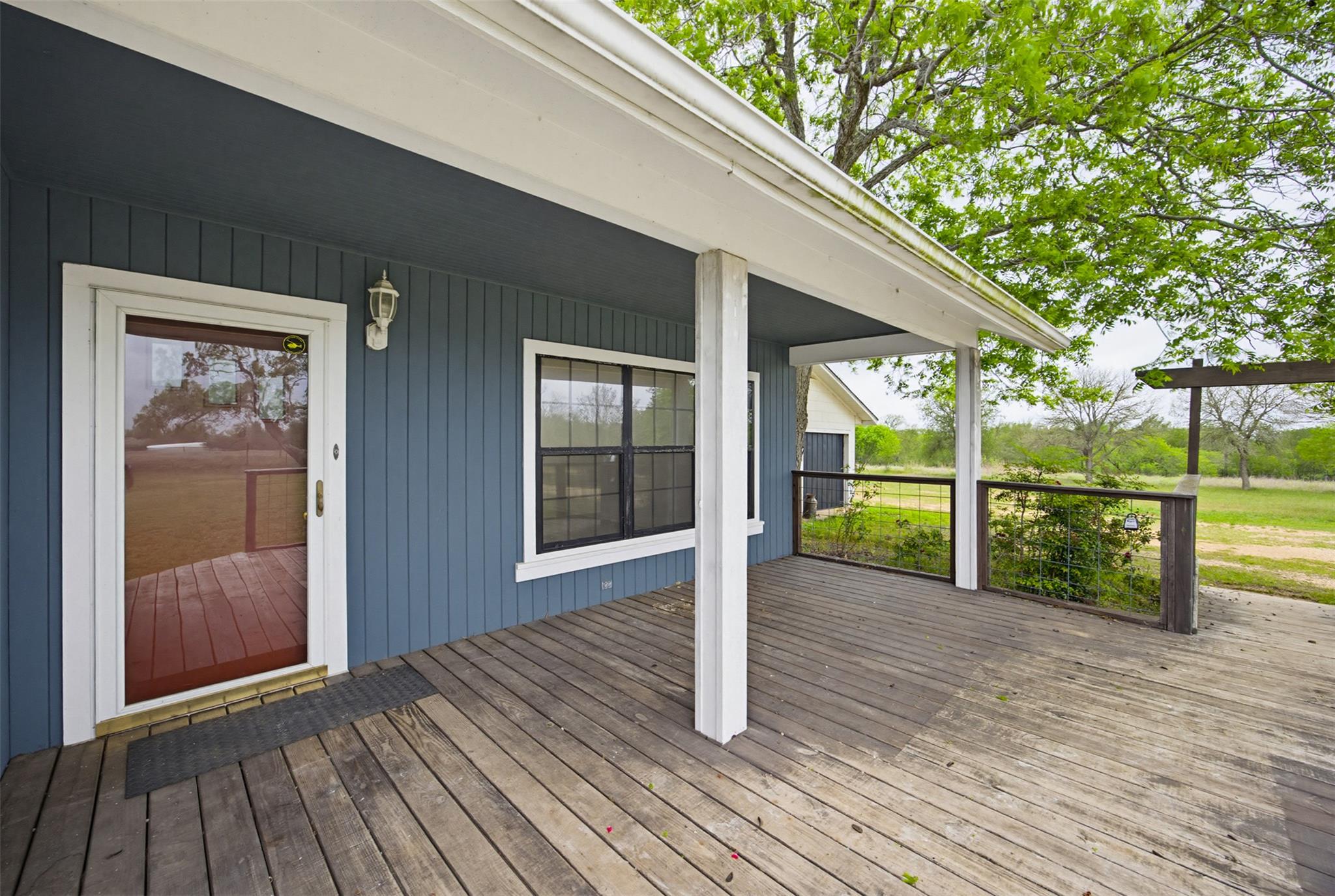 Welcome to this charming, quaint 2 bed, 2 bath home set on 11 acres in Lockhart, TX. Enjoy amazing sunrise and sunset views from the expansive front and back decks, offering the perfect place to start or end your day. Step inside to a beautifully kept home featuring original wood floors, built in china cabinets with glass doors, and an impressive telephone nook that simply begs for a cozy gossip chair beside it. The spacious primary bedroom offers two closets and an ensuite bath with a walk in shower. The guest room includes a large walk in closet, and the guest bath has been remodeled with a lovely walk in shower. Now step outdoors, where the true potential of this property opens up. The privacy of 11 acres just off your large deck creates endless opportunities for entertaining, relaxing, or simply enjoying the quiet. The deck is so spacious it could easily serve as a stage for gatherings with friends and family. For those interested in animals, there is a barn and chicken coop ready to go. House your favorites, goats, sheep, pigs, or miniature horses, with plenty of room to expand. Larger outbuildings offer space for cows, horses, tractors, and equipment. The front portion of the property is cleared and usable, while the back offers moderate tree coverage, ideal for trails or added privacy. Located approximately 40 minutes from ABIA and Austin, this property gives you space to spread out while staying connected. Lockhart continues to grow, offering great conveniences, dining, entertainment, and community events. Come take a look and picture a place where life can slow down just enough to enjoy it.