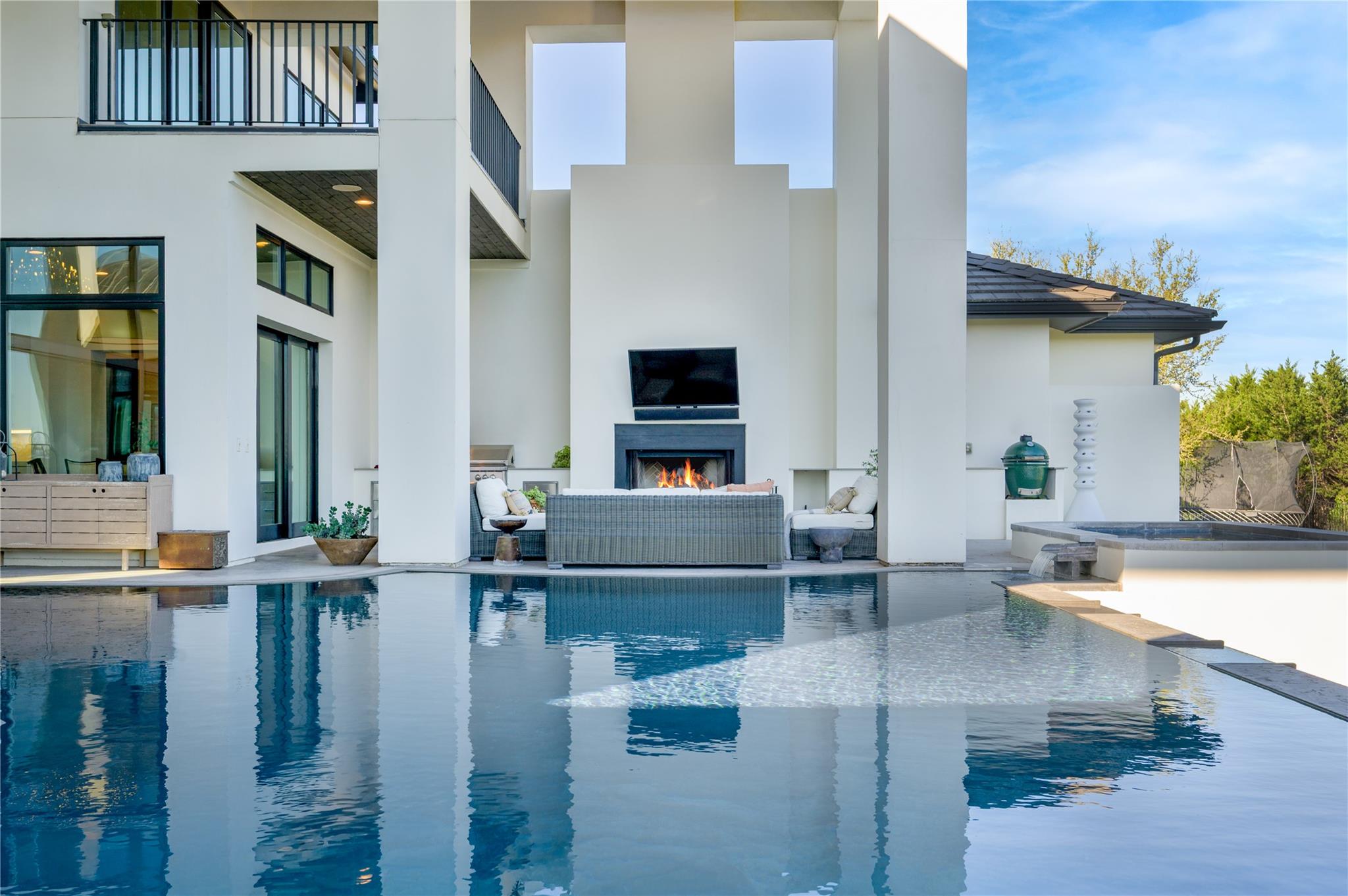 Views! Views! Views! Experience refined Hill Country living in this modern estate located within private gated community on 1.7 acres at end of quiet cul-de-sac, showcasing sweeping panoramic views. This residence is designed with balance of luxury, comfort, and functionality, offering thoughtfully connected living spaces ideal for both everyday living and elevated entertaining. Home features 6 bedrooms, 5 baths, 2 half baths, along with multiple flexible-use areas that enhance livability. Open-concept main living areas are filled with natural light and create seamless flow between kitchen, dining, and living spaces. Private office provides ideal work-from-home setting, while additional dedicated spaces include media room w/ cocktail bar, and versatile bonus room designed for recreation. The primary suite and secondary bedrooms are generously proportioned, offering privacy and comfort throughout. The detached casita supports multi-generational living or guest accommodations with ease. Ownership includes access to Lake Travis, providing an exceptional opportunity to enjoy one of the region’s premier recreational lakes for boating, swimming, and leisure. Outdoor living is complemented by home’s elevated setting, capturing expansive Hill Country vistas and providing serene backdrop for relaxation or entertaining. Outdoor living offers an infinity-edge swimming pool and spa as well as a wood burning fireplace that take full advantage of the surrounding Hill Country views. A 3-car garage offers ample parking and storage, completing this well-appointed and private property. Blending modern design, flexible living spaces, premier amenities, lake access, and a sought-after school district, this residence delivers a rare opportunity to enjoy privacy, space, and breathtaking views in a highly desirable Hill Country setting. Lots of storage! Property also located within highly acclaimed Lake Travis Independent School District, known for exemplary academic and sports programs.