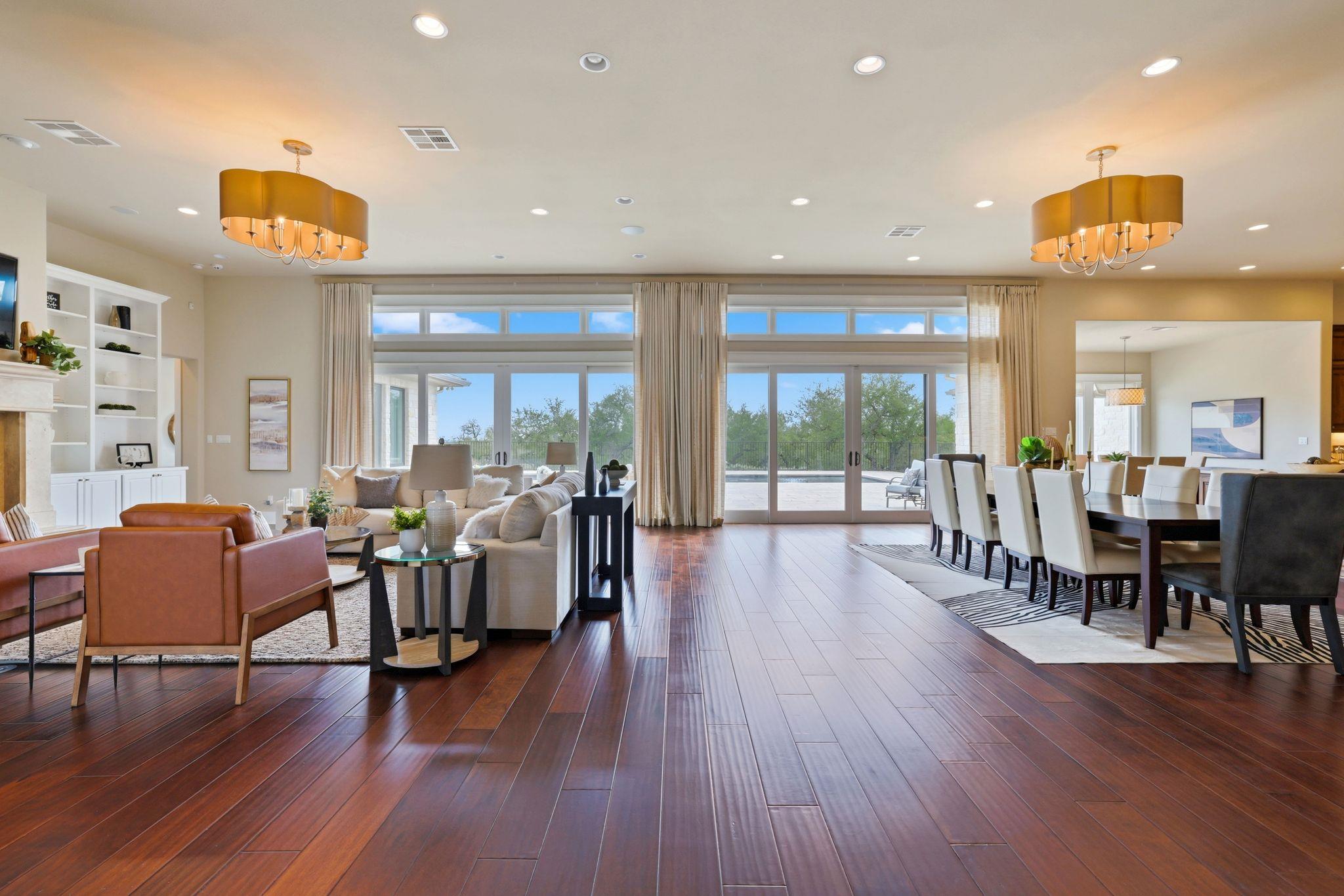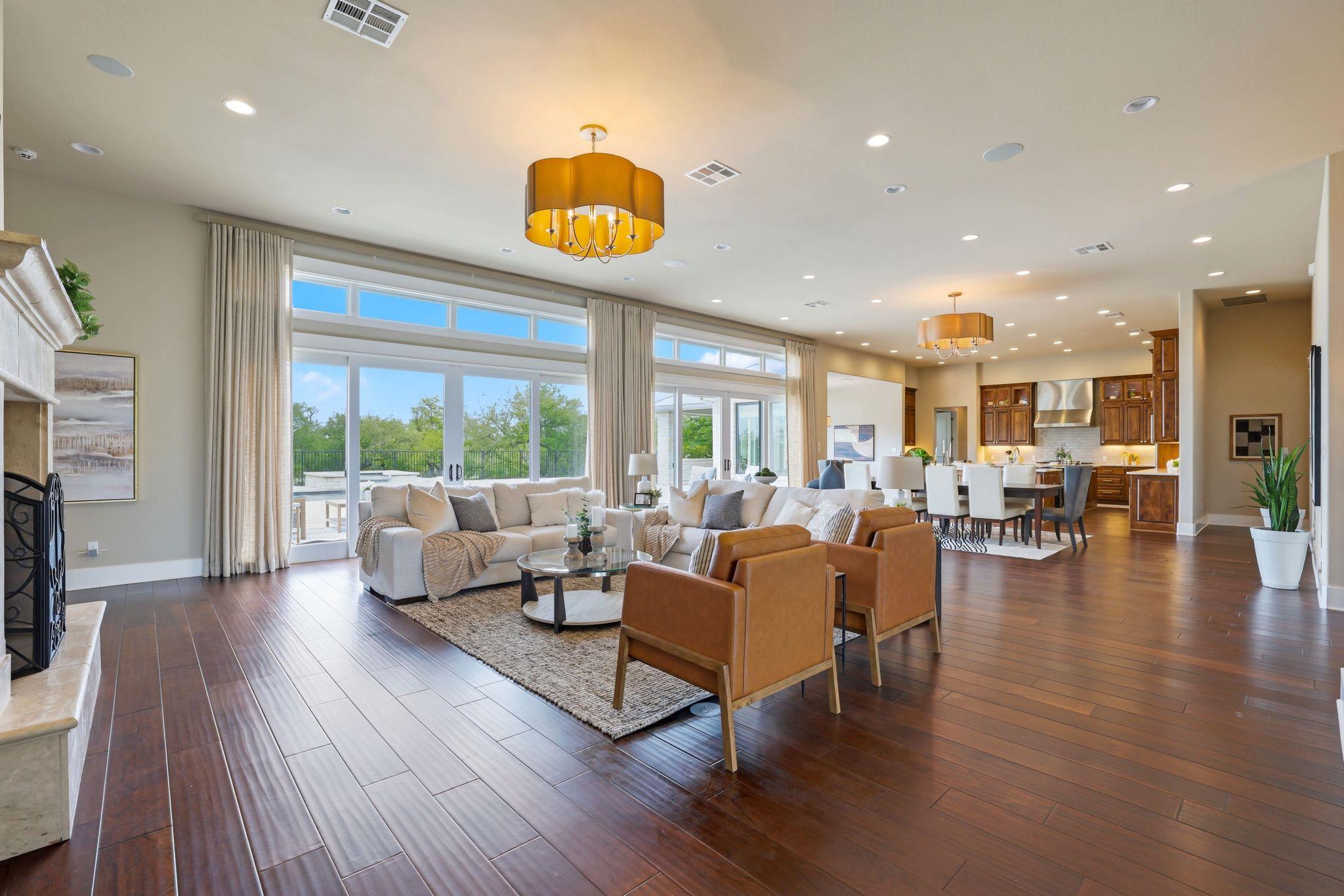 A private Hill Country retreat where scale, light, and land come together in a way that feels both elevated and effortless, with a low tax rate of 1.624%. Set on over 3 acres with sweeping natural views, this estate offers more than 5,000 square feet of thoughtfully designed living space that opens up the moment you walk in. Soaring ceilings and expansive windows flood the home with natural light, creating a warm and inviting feel throughout. The layout offers 5 bedrooms, a dedicated office, media room, and a versatile flex space that easily adapts to an additional living area or entertainment space. There is also an abundance of storage, including 2 separate oversized attic spaces. The primary bathroom features an oversized walk-in shower and clean, open finishes, while the kitchen showcases a striking double island wrapped in warm, soft white quartz that flows seamlessly into the outdoor living areas. The outdoor space is built for both entertaining and everyday enjoyment, featuring a resort-style pool and an expansive deck overlooking the surrounding nature. The backyard includes a full outdoor kitchen with covered dining, a screened-in porch, and a two-tiered deck that flows into a hotel-size pool with spa and fire pit, along with a bocce ball court surrounded by lush landscaping. The Madrone Ranch Neighborhood stands out for its equestrian lifestyle, where residents can ride directly from their property onto private neighborhood trails. The community also features a stable facility with around 50 stalls, an outdoor riding area, climate-controlled tack rooms, and a viewing lounge. Zoned to top-rated schools including Lake Travis High School, and just minutes from Whole Foods, Trader Joe’s, and the Hill Country Galleria, while also being near Hamilton Pool, the Pedernales River, Westcave Preserve, and Reimers Ranch. Opportunities like this, where you get scale, privacy, and lifestyle all in one, are rare in the Austin market.