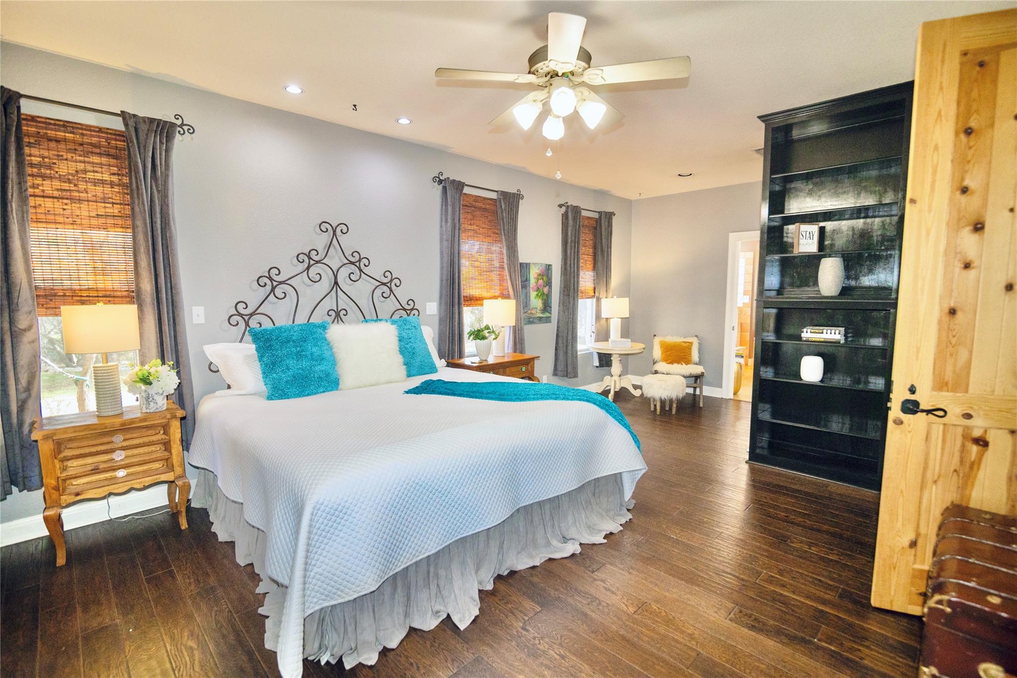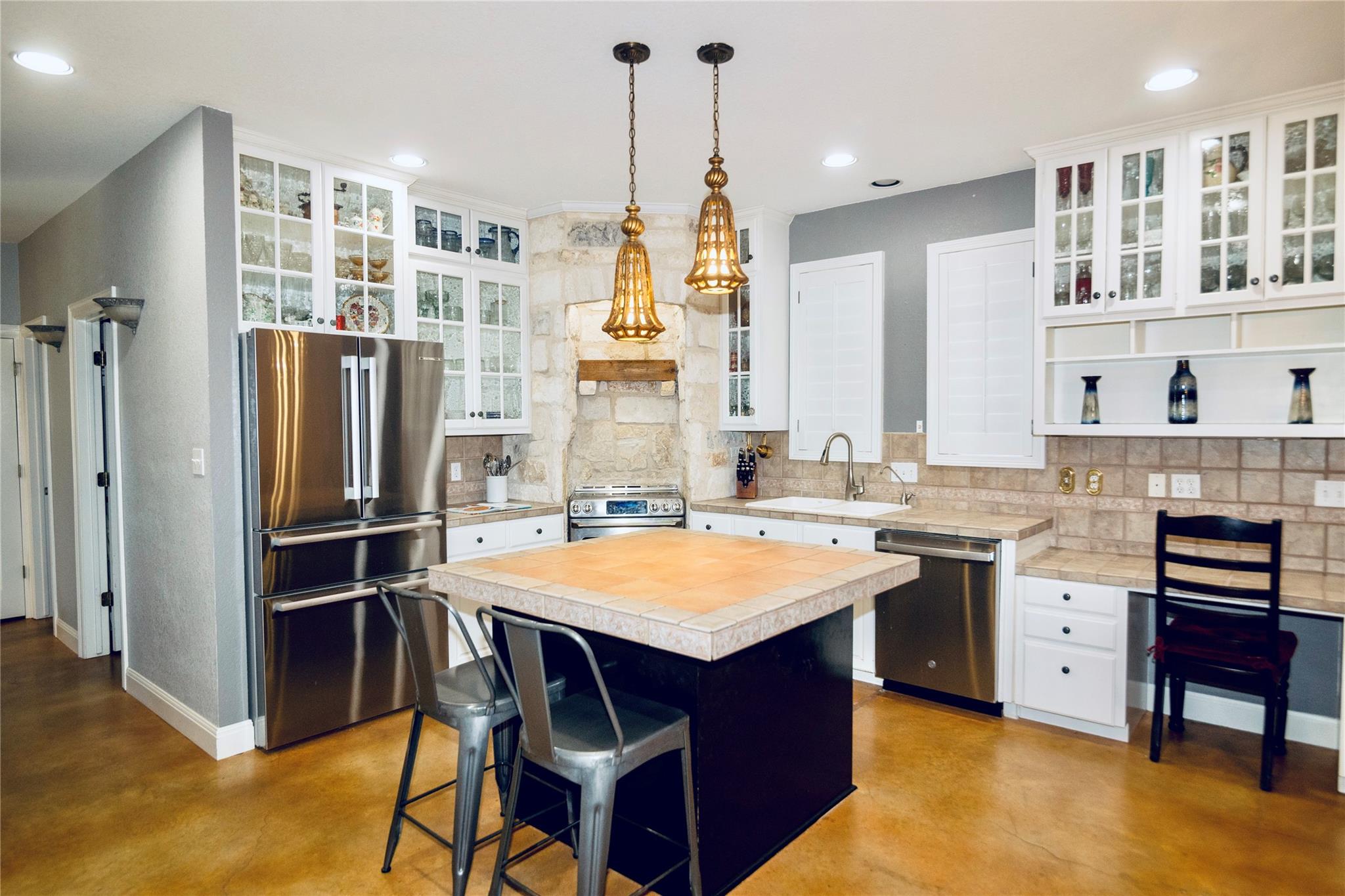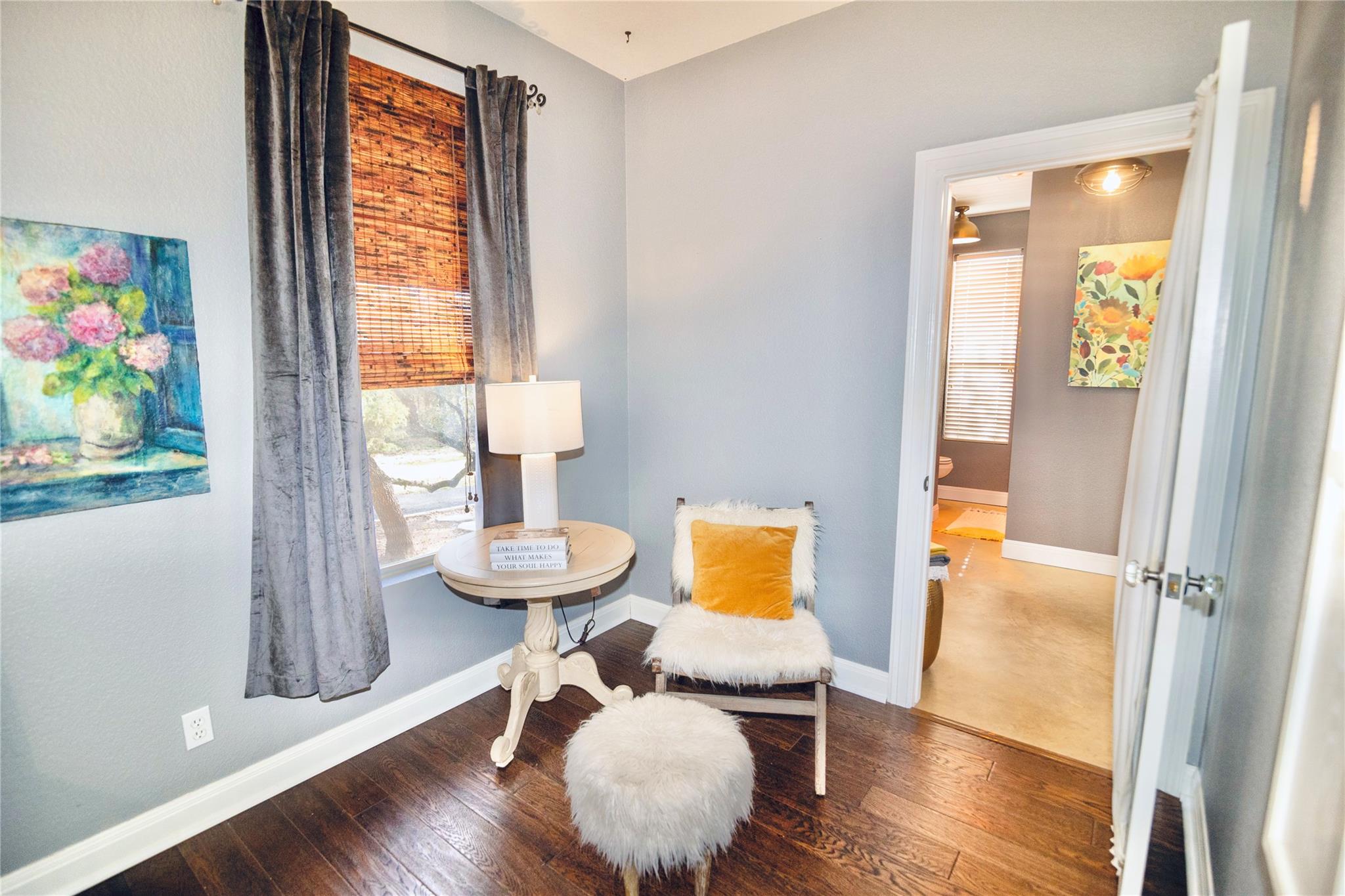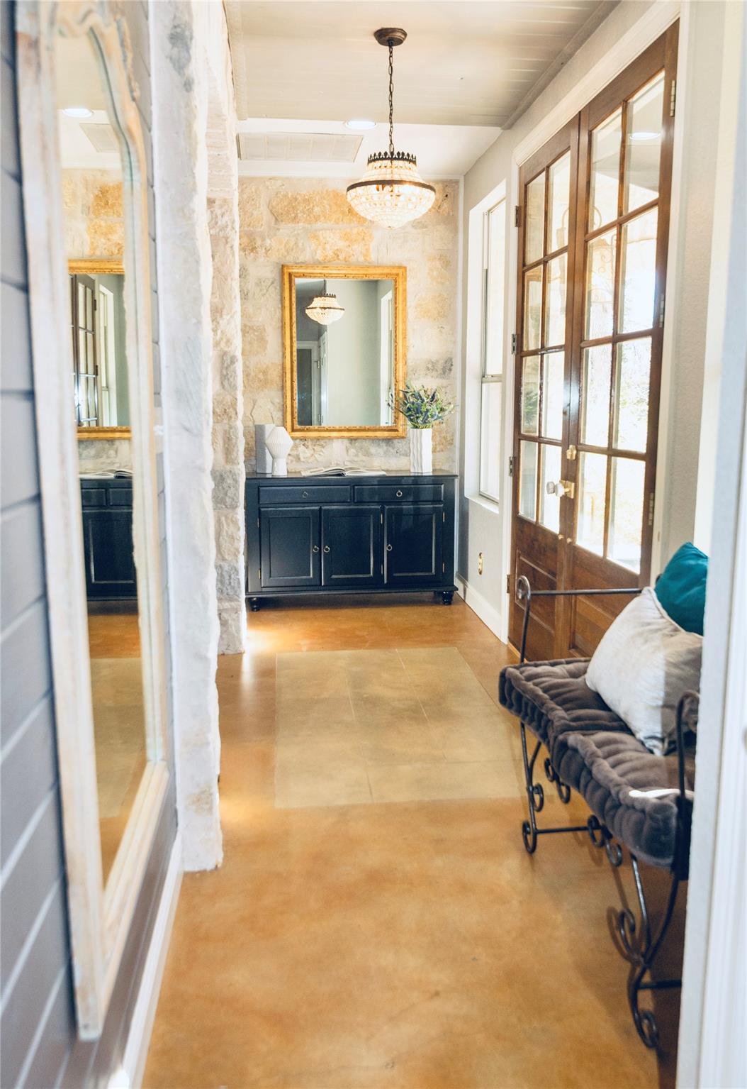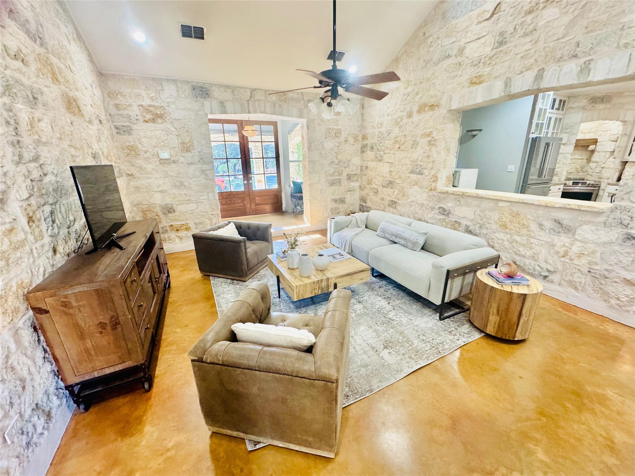 *SEE UPGRADES LIST IN ATTACHED DOCS/ LAST PHOTO IN MLS* Gorgeous Hill Country living in SW Austin with your own private backyard oasis featuring an inground pool and expansive entertainer’s patio. This elegant luxury home sits on over 1.5 acres of tree-filled land with a circular driveway that forks to the back of the property, where you’ll find a detached two-car garage and spacious driveway. Stained concrete flooring, recessed lighting, and a Texas-rustic-meets-modern-chic design add to the charm. The kitchen is the heart of the home, built for the home chef with a center prep island, wraparound bar seating, and a spacious dining area under an ornate chandelier. Enjoy sleek stainless steel appliances, a range set in a stone grotto, windowed cabinetry stacked to the ceiling, and extensive built-in pantry storage. Stay connected via a stone-framed opening to the living room. The main floor also hosts a deluxe primary suite with a spa-like bath and dual walk-in closets, plus a bonus flex living area with a bar, both with walk-out access to the back. Upstairs you will find two well-sized secondary bedrooms, a large full bath, and a home office with a charming terrace. Outdoor living shines with a sprawling fenced courtyard, sparkling pool, shaded gathering areas, and gardens. Convenient to retail, dining, and HEB at Belterra. Zoned to Baldwin Elementary, Small MS, and Bowie HS. No HOA, low 1.56% tax rate. Easy access to 290 and just 18 miles to Downtown Austin.