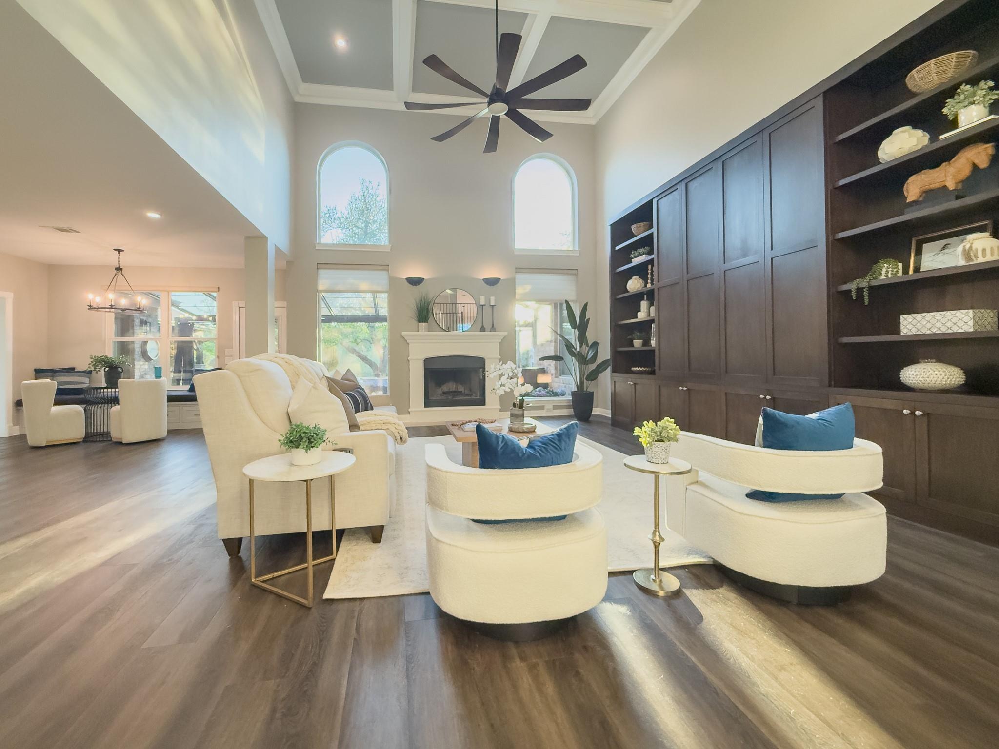 Experience resort-style living in Westlake! This exceptional 1.4 acre estate, zoned to Eanes ISD, offers 6,123 sq. ft. of refined living. The main residence is luxurious and spacious at 4,881 sq. ft. This home blends luxury and comfort with soaring ceilings, abundant natural light, and custom details throughout. The gourmet kitchen, with Thermador appliances and a Sub-Zero 72 in. refrigerator & freezer is any chef’s dream. The kitchen opens to the great room with wood-burning fireplace and beautiful custom built-ins. The main-level primary suite is a serene retreat featuring a sitting area, double-sided gas fireplace, and spa-inspired bath. Additional highlights include a private office with built-in cabinets and pocket doors, elegant dining room with chandelier, mudroom with oversized pantry, and versatile bonus room. Upstairs, three bedrooms, two full baths, a game room, and theater room provide space for relaxation and entertaining. A 1,242 sq. ft. private, detached second residence offers flexible living for guests or multi-generational families. This versatile living space opens into a bright, fully equipped second home. Guests will enjoy a living area with fireplace, full kitchen, full bath, and comfortable bedroom. Thoughtful finishes, plenty of natural light, and independent access make it perfect for long-term guests, multi-generational families or live-in help. An additional room with full bath could be used as a second guest room or a more private home office. Outdoors, enjoy sweeping canyon views, a sport court, pool and spa, outdoor kitchen, and cozy fireplace- ideal for year-round gatherings. This meticulously updated estate combines luxury, functionality, and breathtaking natural surroundings in one of Austin’s most sought-after locations. Additionally, residents enjoy a community pool, playground and access to a private Lake Austin beach with two docks- perfect for kayaking, no public access.