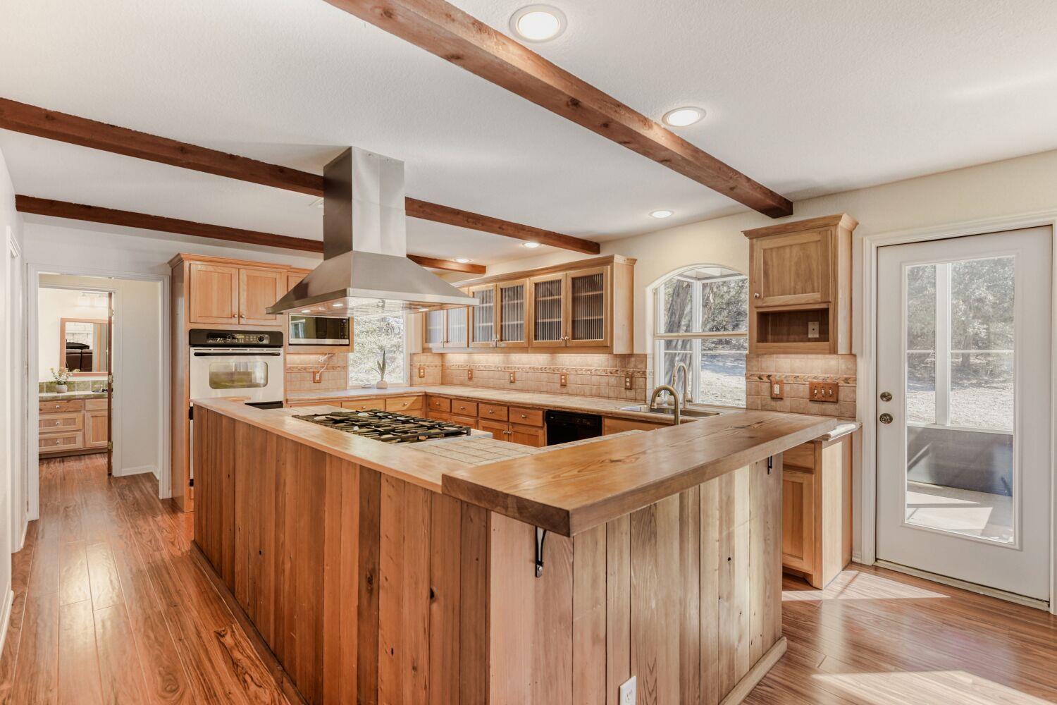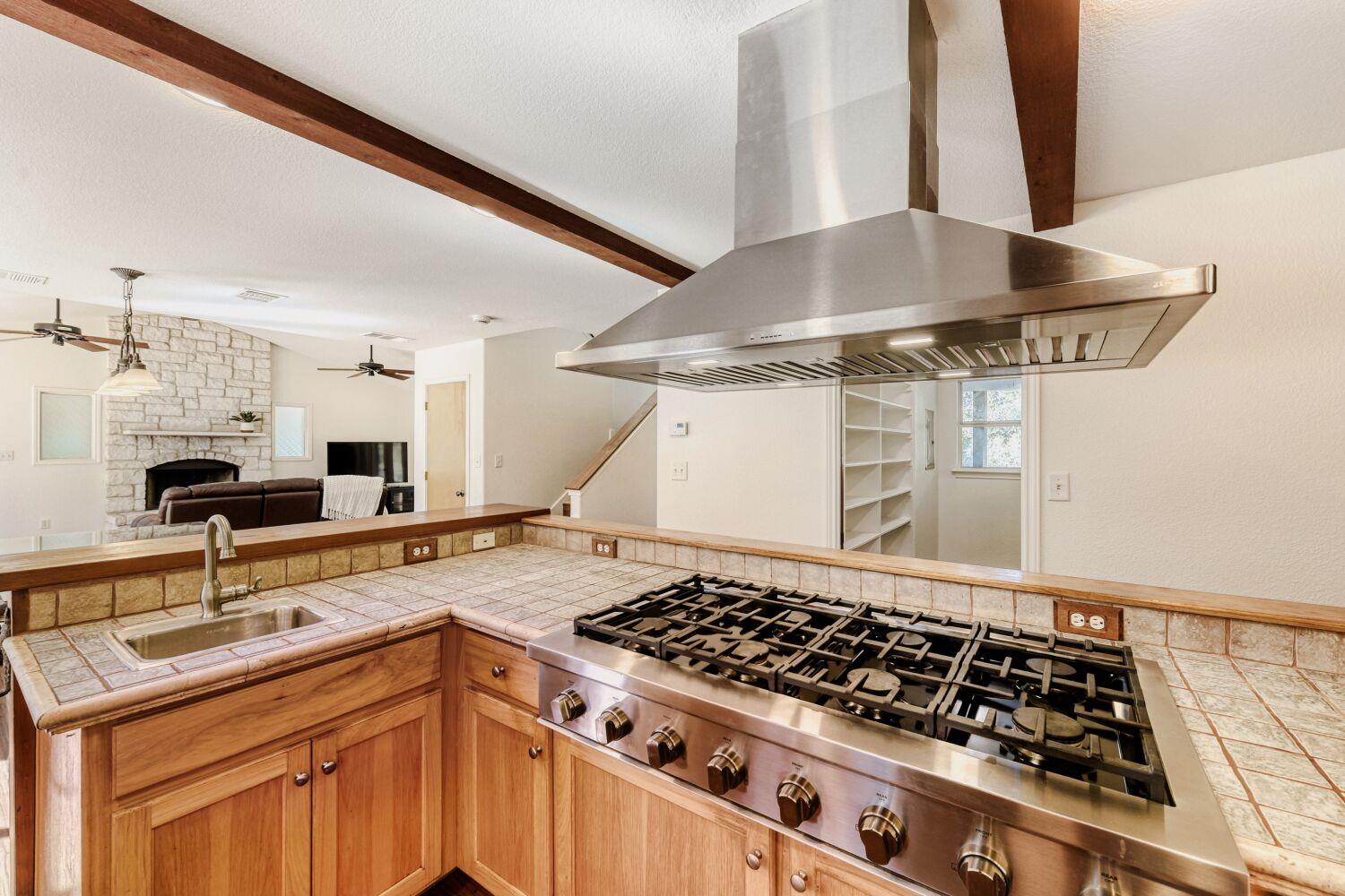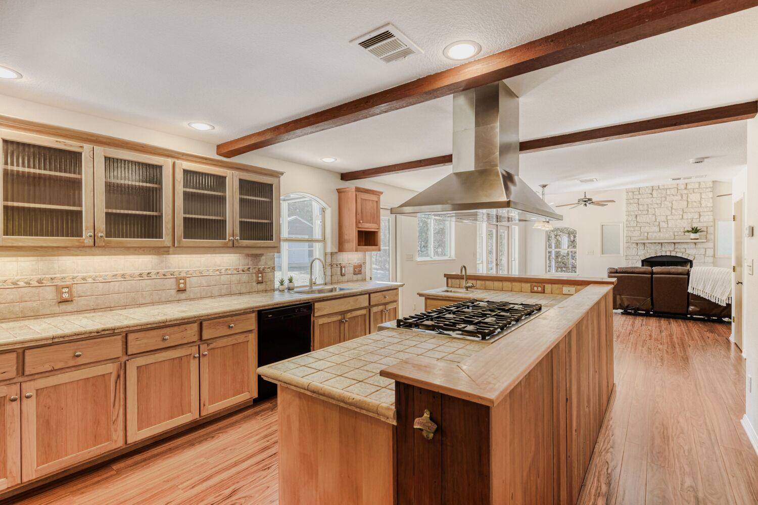 Welcome to 8705 Bear Creek Drive, a Hill Country retreat on a private 2.84 acre property offering peaceful country living just 20 minutes from downtown Austin. Located in the Bear Creek Oaks community, this 3 bedroom, 2.5 bathroom home features an open floorplan ideal for everyday living and entertaining with views of the surrounding landscape. The home was thoughtfully designed with a flex space that can function as a third bedroom using an accordion style partition. The spacious kitchen is the heart of the home with an impressive 8 burner gas cooktop, perfect for a foodie or chef, along with a gorgeous vent hood, abundant cabinetry, and an oversized pantry. Recent improvements include updated flooring, fresh interior paint, and refreshed porches that create inviting outdoor spaces to relax and enjoy the property. The stunning wraparound porch welcomes you to slow down and enjoy the peaceful setting. In addition, there are two covered porches, one upstairs connecting the primary bedroom and flex space, and another enclosed porch just off the kitchen that creates the perfect sitting room or yoga space. The spacious primary suite includes two large walk-in closets. Step outside and enjoy the privacy of your acreage, with ranch fencing along three sides of the property and room to enjoy the outdoors, including an enclosed garden area perfect for growing veggies, herbs, or flowers. The covered porches are perfect for a morning cup of coffee or evening beverage while watching wildlife and Hill Country sunsets. The backyard retreat includes a $25k Master Spa that functions as a hot tub in the winter and a refreshing mini pool in the summer. The separate detached garage/workshop offers flexibility as a garage, storage space, or workspace and includes electricity and water connections. With space, privacy, and convenient access to Austin, this property offers the best of Hill Country living while remaining close to Austin and Dripping Springs and zoned to top tier schools.