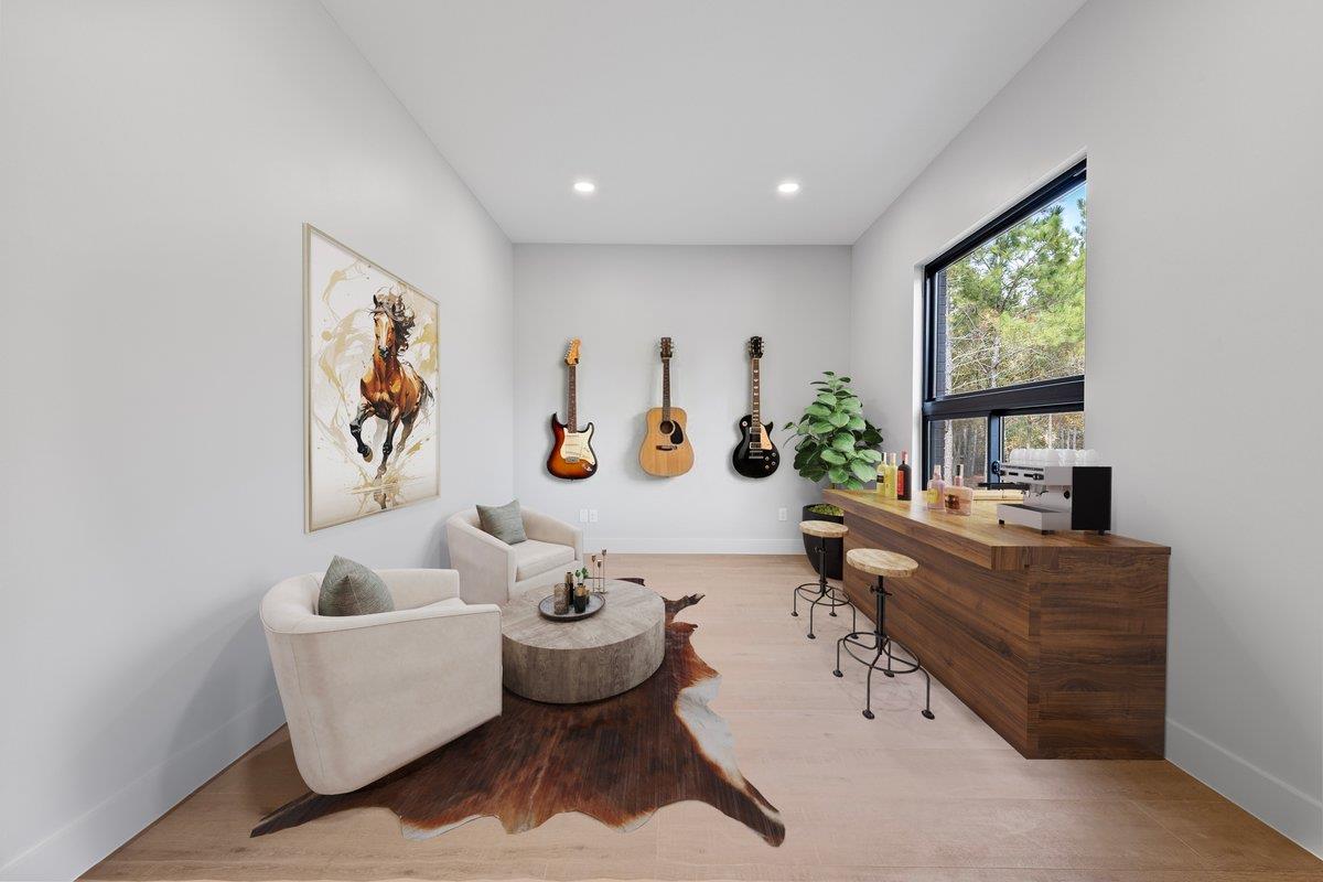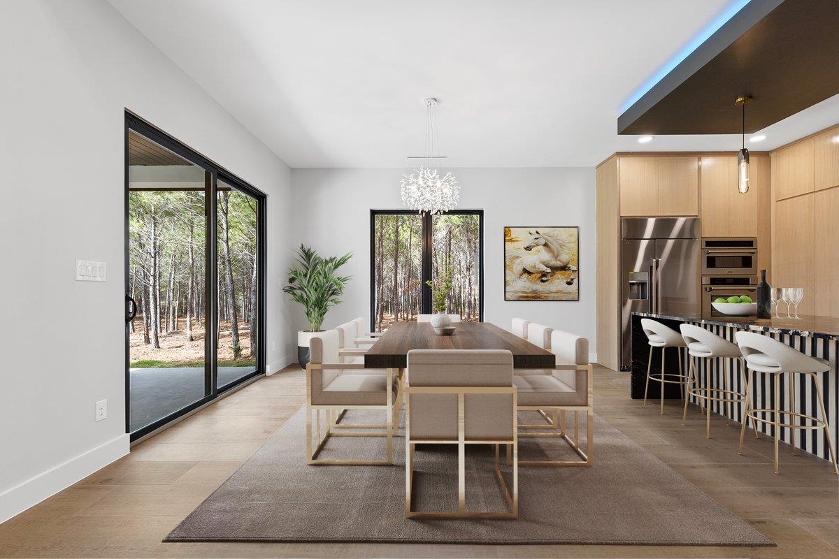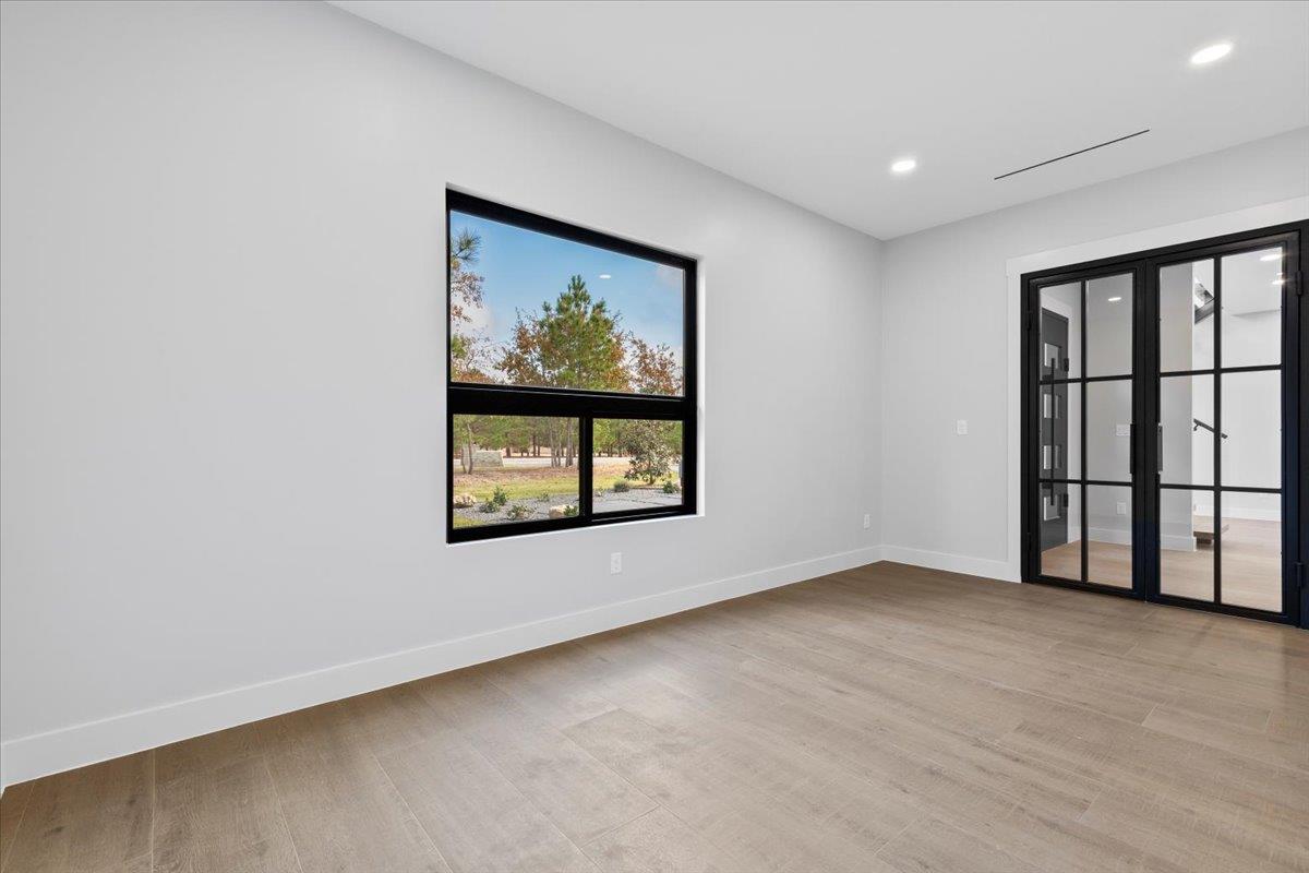 Modern custom home on 3.2 acres just outside Austin for buyers who value construction quality, space, and long-term flexibility. Located in Bastrop County with access to Austin, Austin-Bergstrom International Airport, and major employment corridors, this property offers privacy, acreage, and a level of construction quality not commonly found in production homes. Ideal for buyers relocating to the Austin area, business owners needing space, or buyers seeking a modern home on acreage with higher construction quality than typical production homes. Custom double insulated metal front doors open to dramatic sightlines framed by a floating white oak staircase and floor-to-ceiling gas fireplace. Upgraded Elevate windows bring in natural light while providing privacy. The chef’s kitchen anchors the main living space with a single-slab natural granite island, 8-burner gas cooktop, soft-close cabinetry, solid wood doors, and custom wine display with dedicated wine fridge in the pantry. The downstairs primary suite offers privacy with a custom closet and spa-style bath. The home also includes a dedicated office, mudroom, and two laundry rooms, one upstairs and one downstairs. Upstairs features a game or media room with its own mini-split system plus a flex room with sink and refrigerator, ideal for a gym, studio, second office, or extended guest space. Outdoor living includes an elevated patio deck with Plex flooring and an upstairs deck with glass railing overlooking pine-covered acreage. The 3.2-acre property offers space for outdoor living and potential future improvements or additional structures, subject to buyer verification and county permitting. Constructed with rebar-reinforced concrete foundation, spray foam insulation, Level 4 smooth wall finish, multiple HVAC systems, in-ground sprinklers, and propane servicing the fireplace and cooktop. Builder plans, engineering, and inspections available on file. Buyer to independently verify all information.