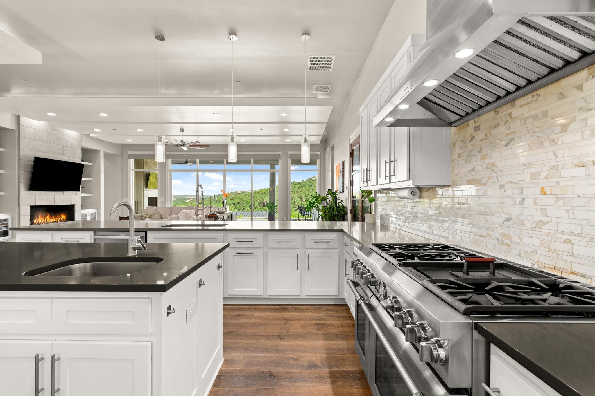 Crafted by Vogel Builders in Grand Mesa at Crystal Falls, this estate offers refined Hill Country living with panoramic views across nearly two acres. The 6,794 sq ft layout presents a grand main living area and an elegant kitchen with quartz surfaces, professional appliances, built in refrigeration, and double ovens. The primary suite spans two levels with a loft retreat and dual closets. A dedicated office, a large bonus room with private balconies, and a concealed flex room behind a custom bookcase provide versatile space for guest use, fitness, or studio needs. Outdoor living includes a pool, spa, outdoor kitchen, and stone fireplace overlooking greenbelt and pond vistas. Smart systems, a three-car garage with golf cart bay, and community access to trails, sport courts, and Crystal Falls Golf Club enhance daily living. Zoned to Leander ISD, including Whitestone, Running Brushy, and Leander High, known for academic and extracurricular excellence. HEB and 183A are minutes away.