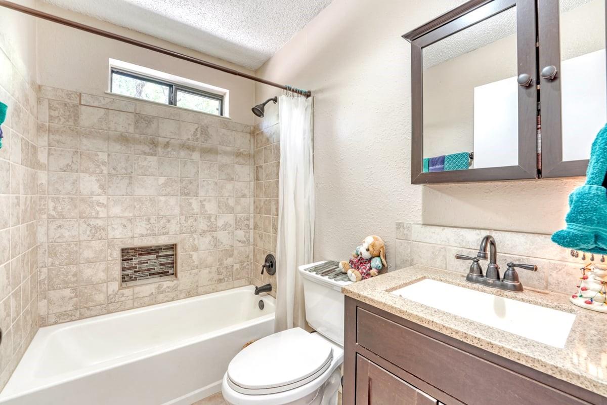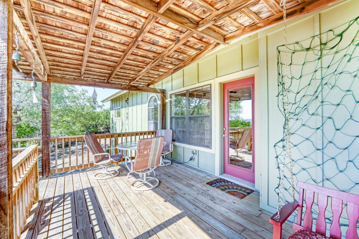 DON’T MISS THIS VERY UNIQUE PROPERTY! A 4 BEDROOM, 2.5 BATH, HILLTOP HOME ON 3.092 WOODED ACRES, deeded for 2 more homes, could be re-subdivided for 6 half-acre or 12 quarter acre lots. PRIVACY AND PEACE. READY TO GO! This beautiful property, in the middle of Lago Vista, a city bordering Lake Travis, appraised in March 2026 at $930,000, may give the new owners $150K plus in equity. Bring your boat, golf clubs, tennis rackets, exercise gear and bathing suits. A separate LVPOA vacant lot conveys with this property, providing lakeside living amenities. Built for the wonderful panoramic, sunrise and sunset views from the 2nd level and spacious deck, the living, dining and open kitchen areas, 2 bedrooms, a full bath and walk-in storage or a 2nd pantry are on the 2nd level. The master bedroom with a sitting area, tiled master bath, dual vanities, walk-in tiled shower and walk-in 2-sided closet are on the 1st level. A large flex room, formerly the 2nd family room, currently the 4th bedroom with beamed ceiling, half bath, walk-in closet, wood floors, and French doors leading out to a spacious patio, a beautiful rock fountain are also on the first level along with the tiled entrance foyer, hall, a laundry room and another large walk-in storage room. A 200 sq. ft workshop, tool shed, storage shed, 2-car garage with an attached office, sometimes a guest room, provide over 300 sq. ft of extra living space. It is on well and septic. Adding solar panels could take this home off the grid. Not within the city limits, no city taxes. Via toll roads, it is approximately 45 minutes from Austin.